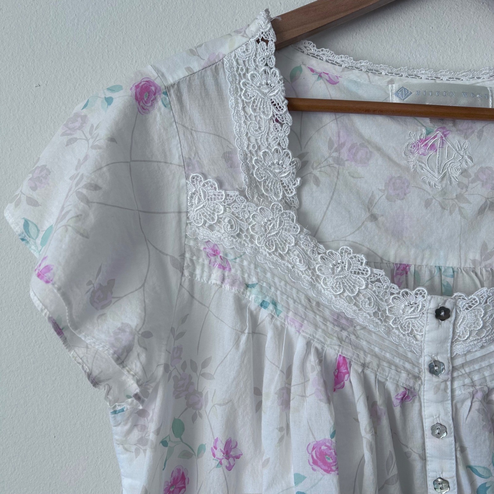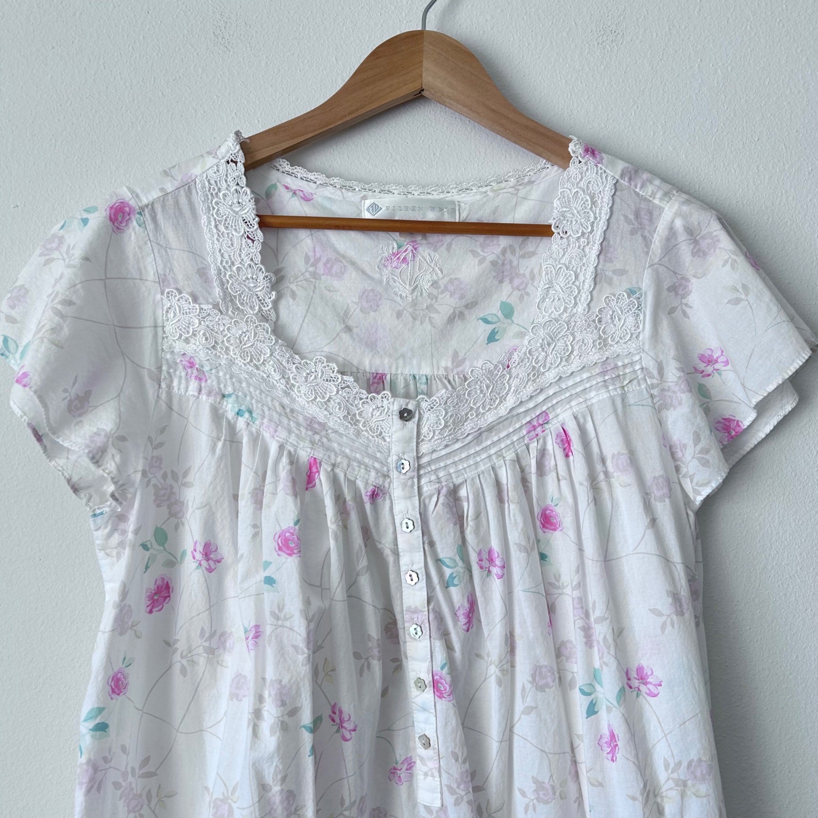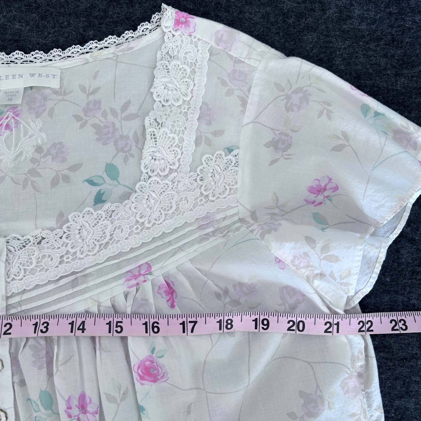 Eileen West Cottage Core M Traditional Nightgown Cotton Floral Lace Short Sleeve