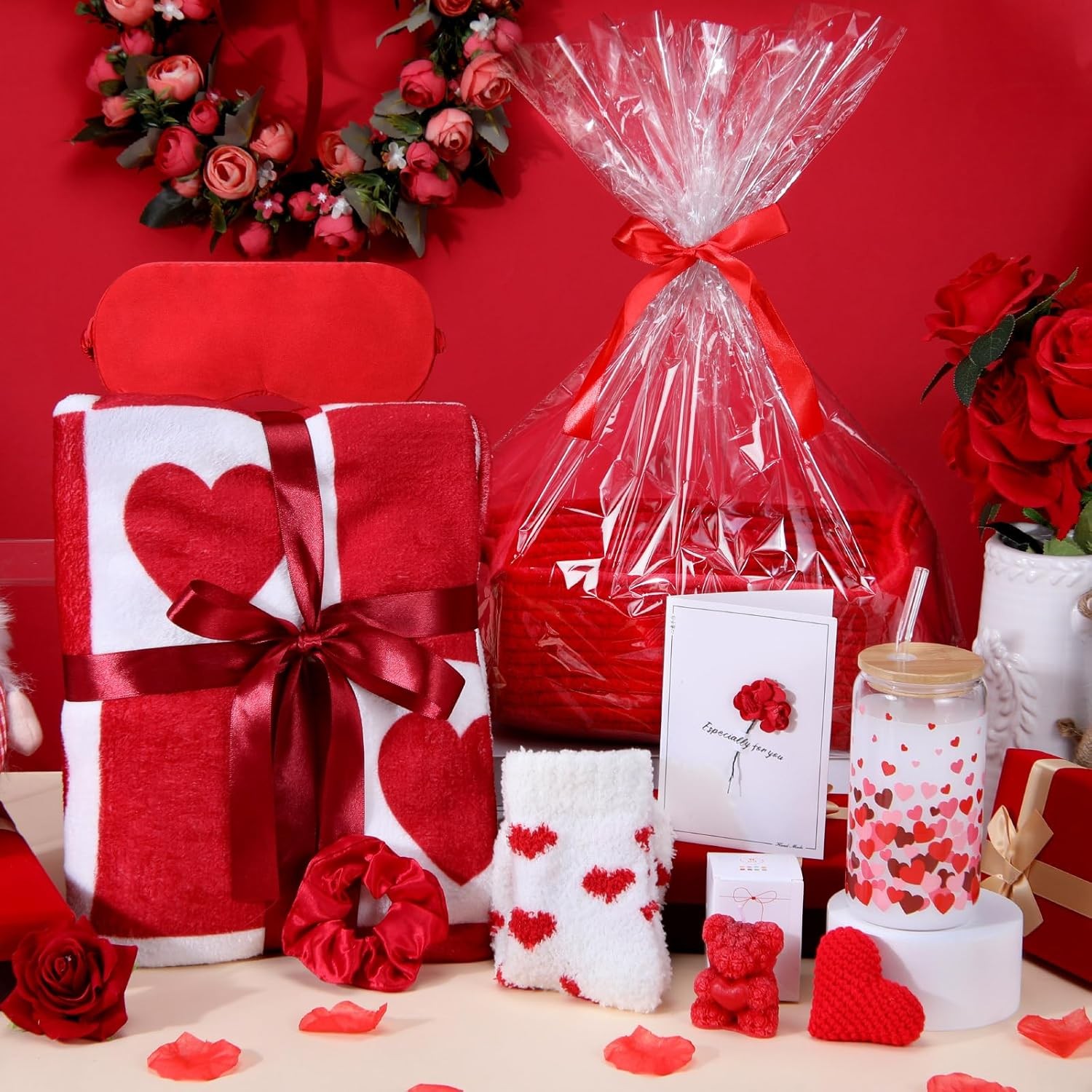 9 Pcs Valentine s Day Basket Gift for Her, Valentines Spa Relaxation Set with