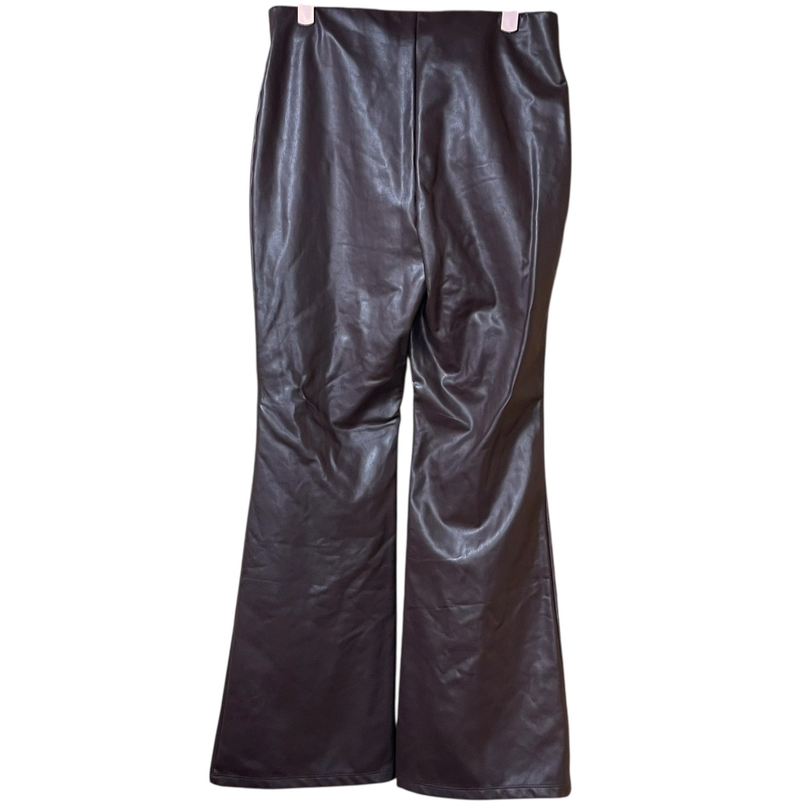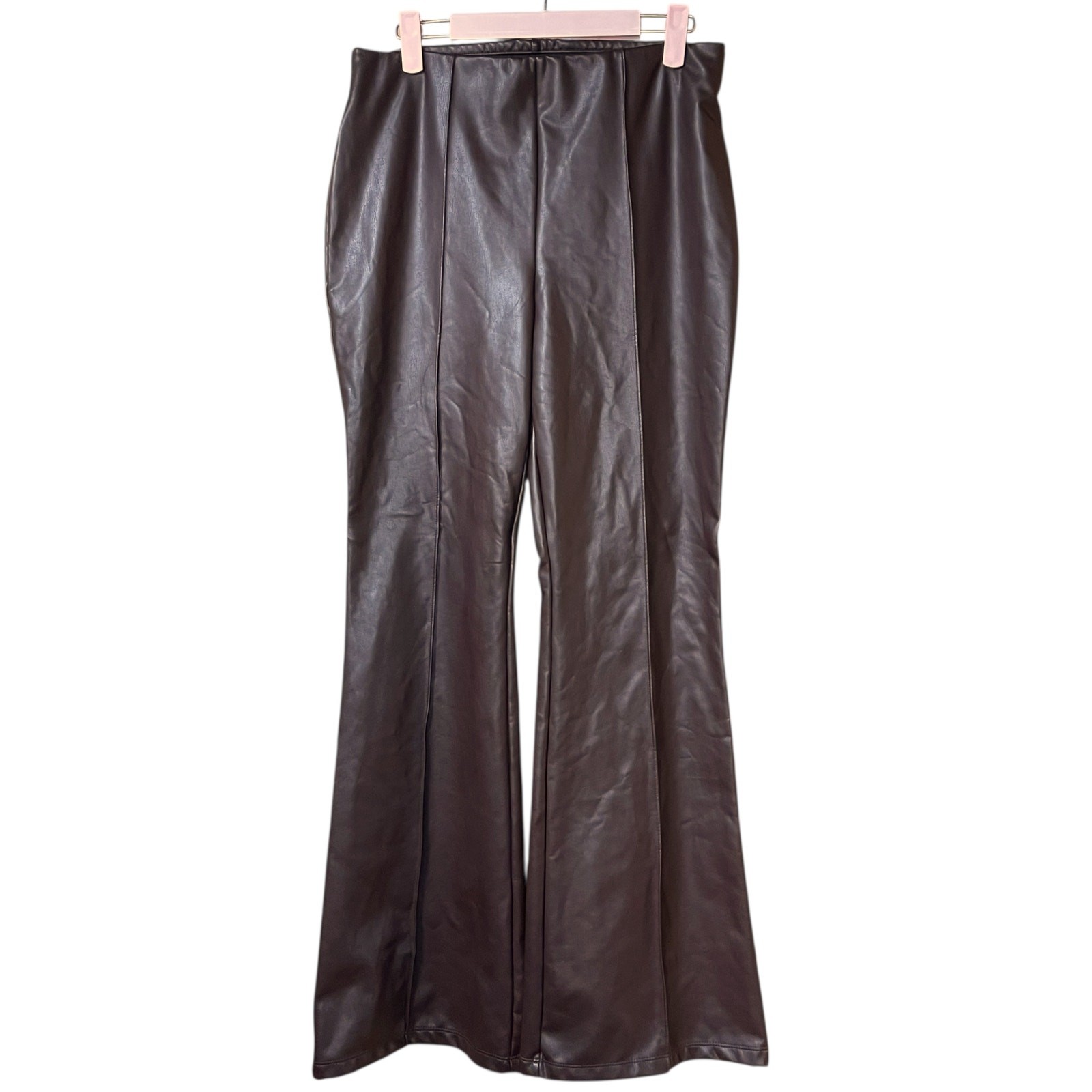 как выглядит A New Day Faux Leather Flare Pants Rich Brown Vegan, Stretch Waist, Size M фото