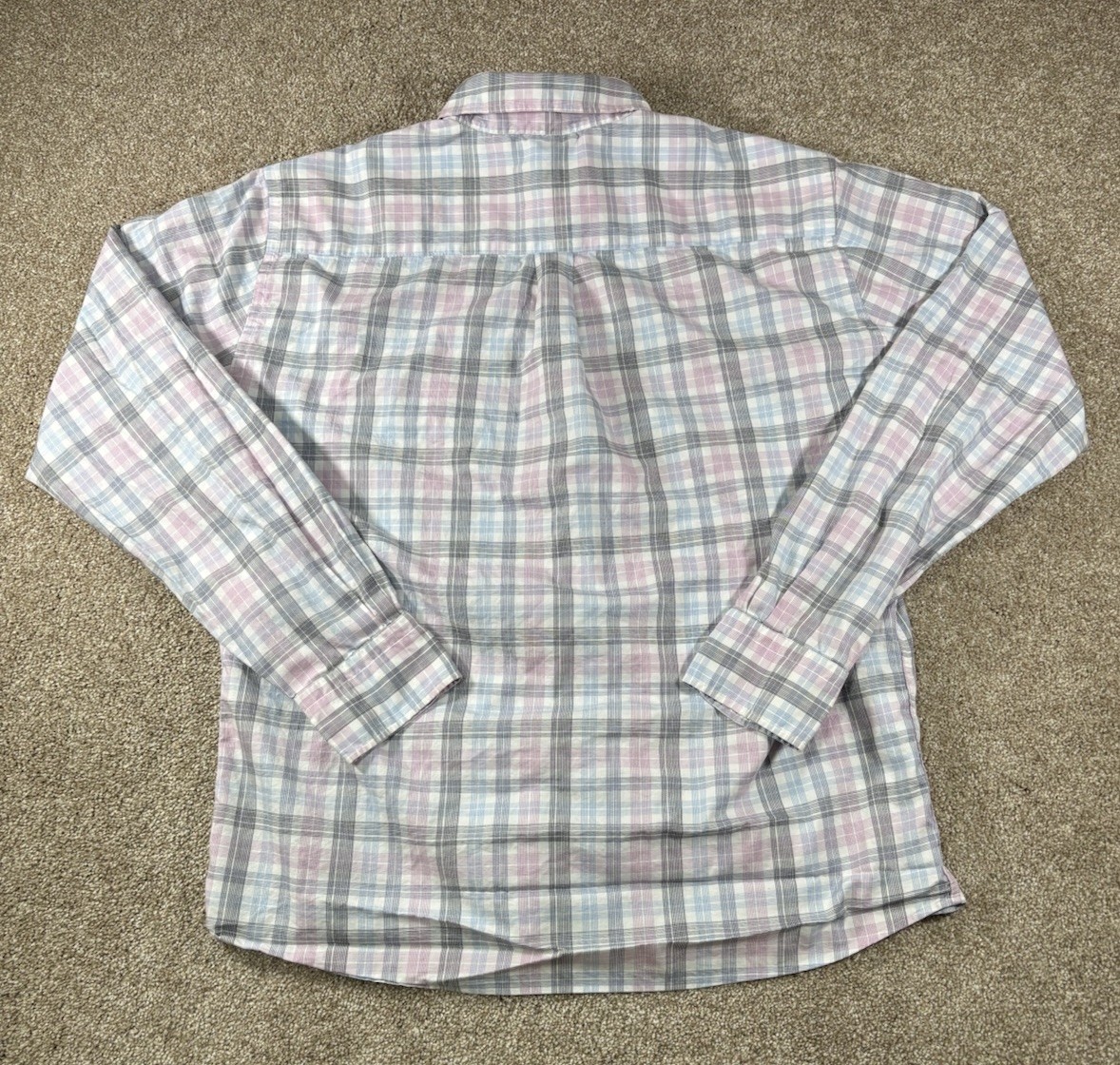 Peter Millar Dress Shirt Mens Large Pink Blue Plaid Check Button Up 100 Cotton
