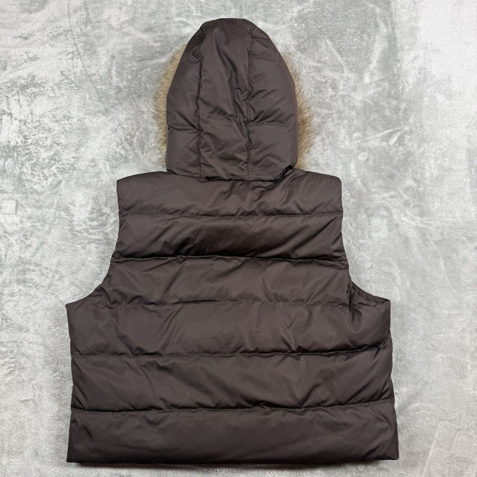 Gap Puffer Vest Youth XL Brown Down Removeable Faux Fur Full Zip Snap