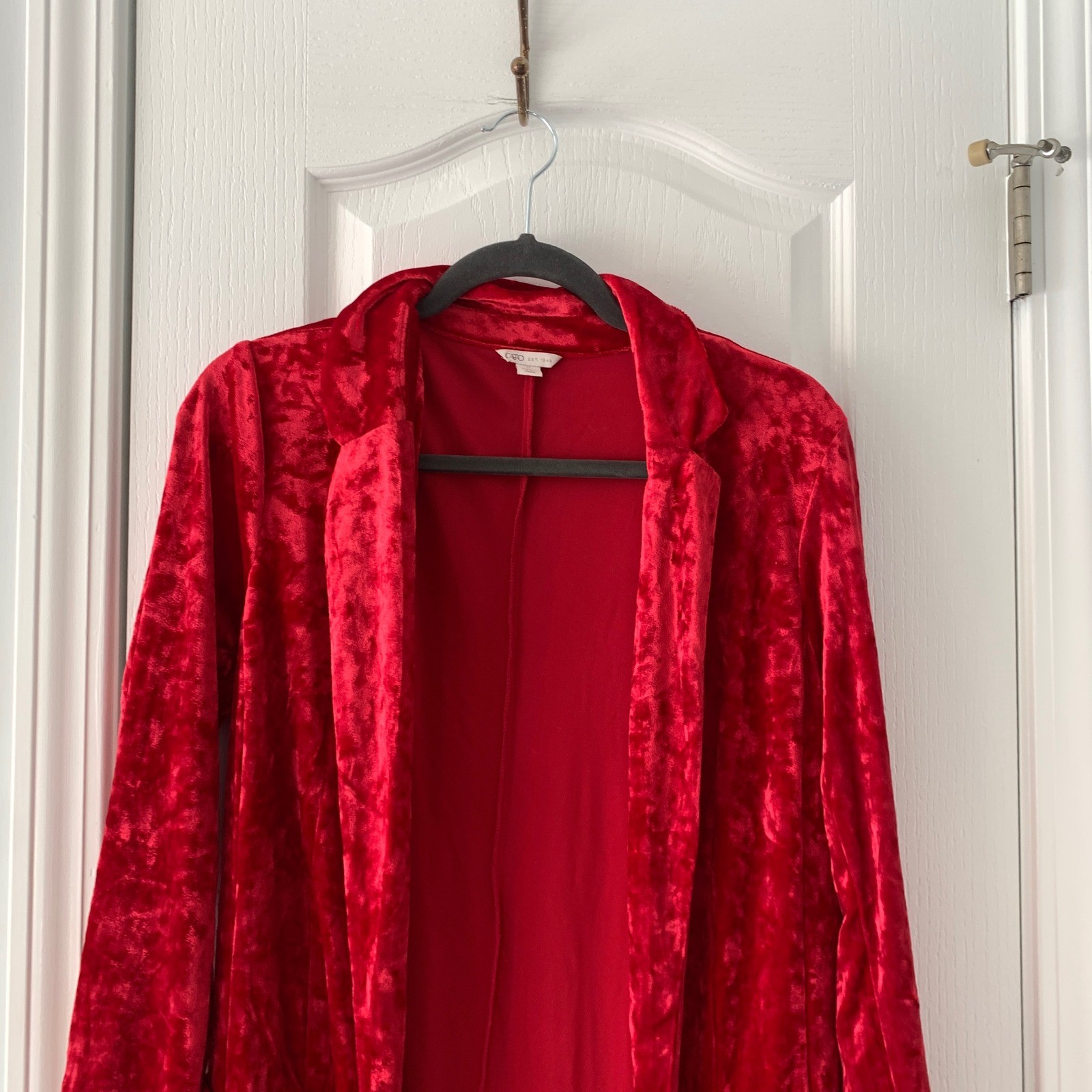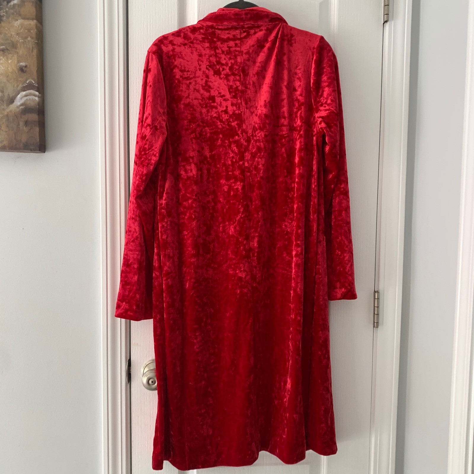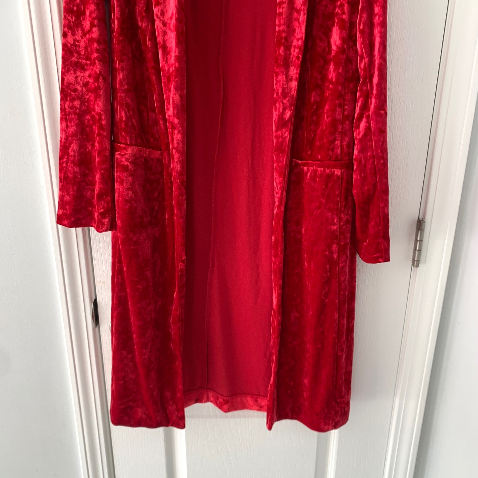 как выглядит Cato Womens Red Crushed Velvet Longline Kimono Duster фото