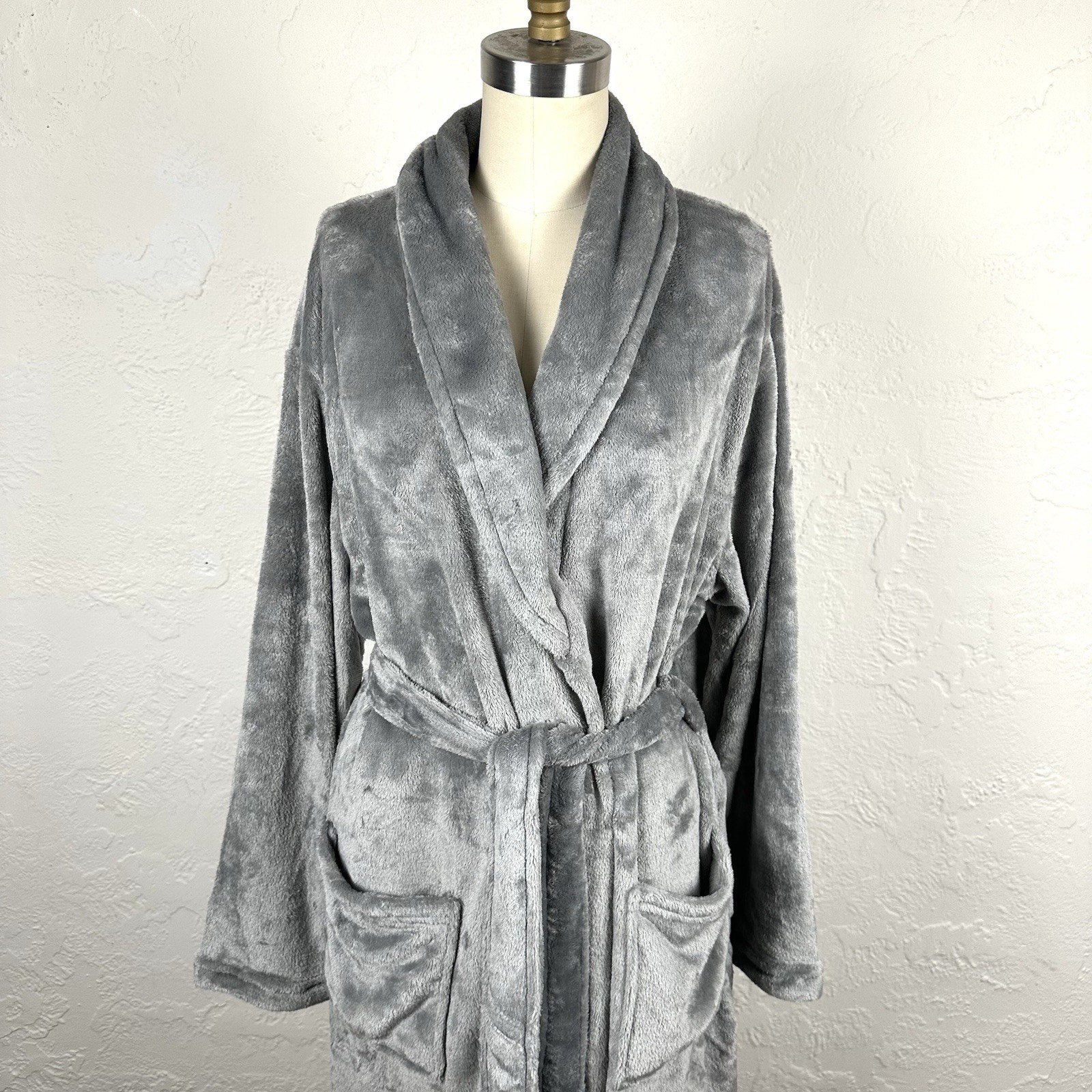 Women s Robe COZY Plush Gray SHORT TIE One Size Spa Mythology NWT