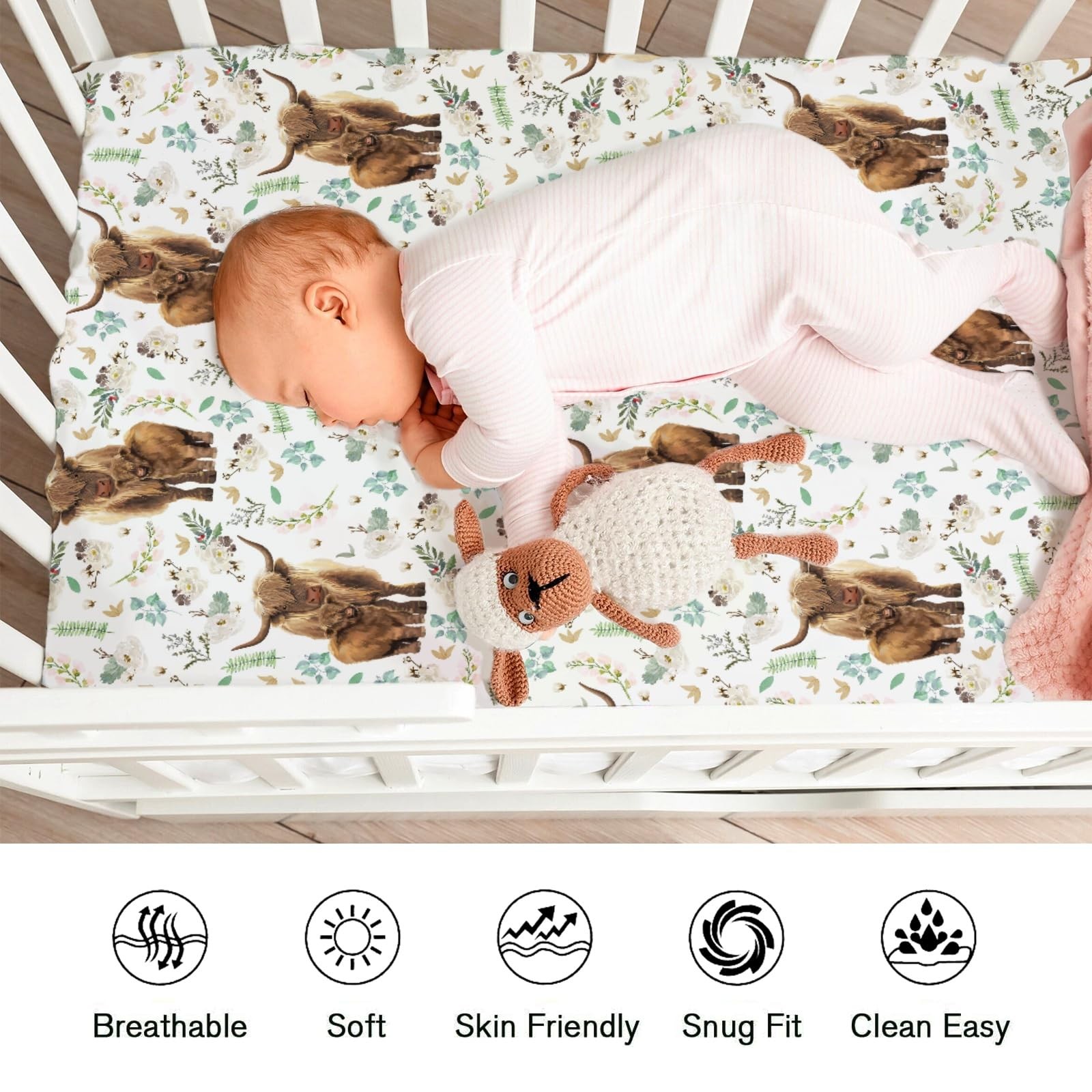Highland Cows Floral Baby Crib Sheets for Boy Girl 52x28 Highland Yak Boho ...