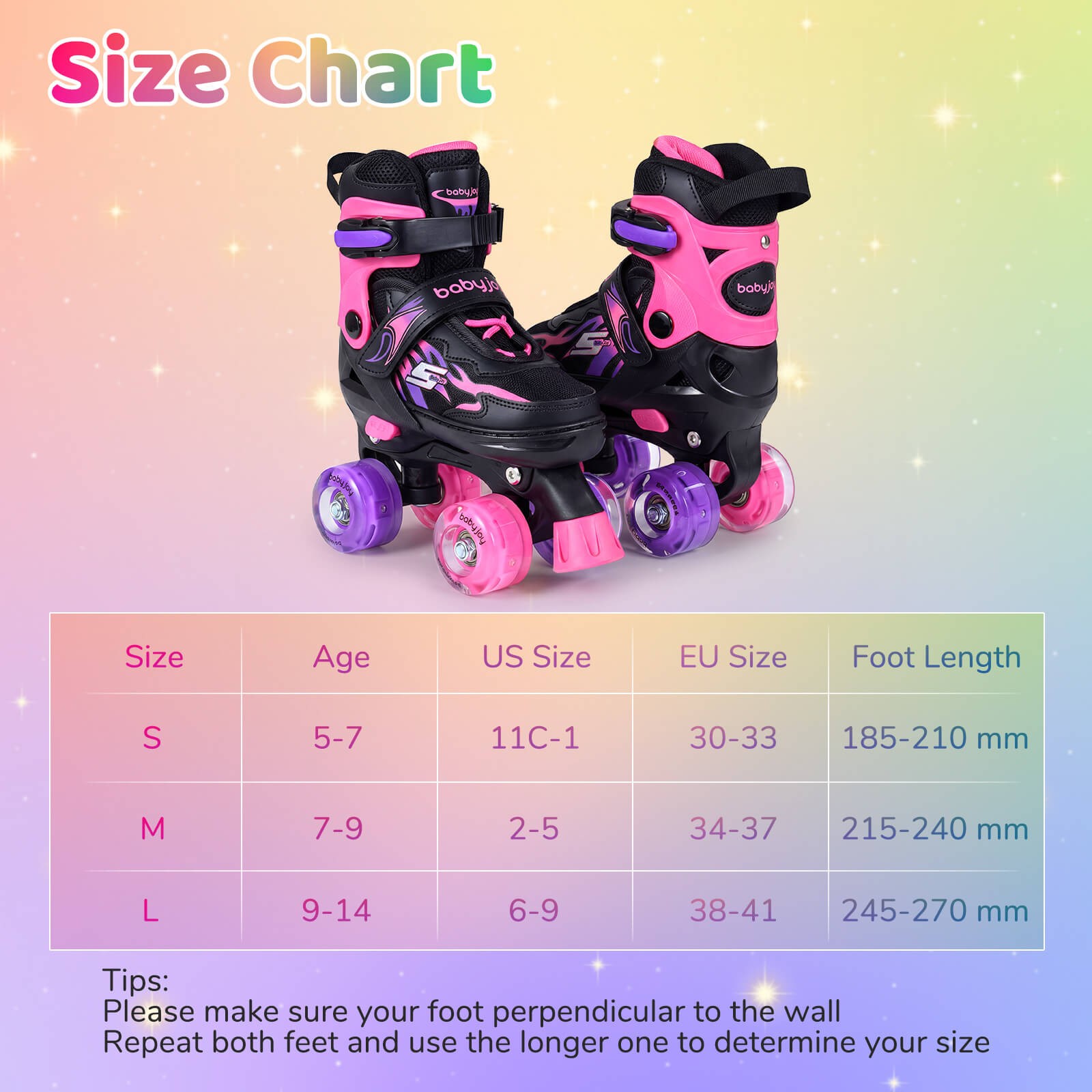 как выглядит Kids Roller Skates 4 Sizes Adjustable Quad Skates w/Light-up Wheels for Ages 5-7 фото