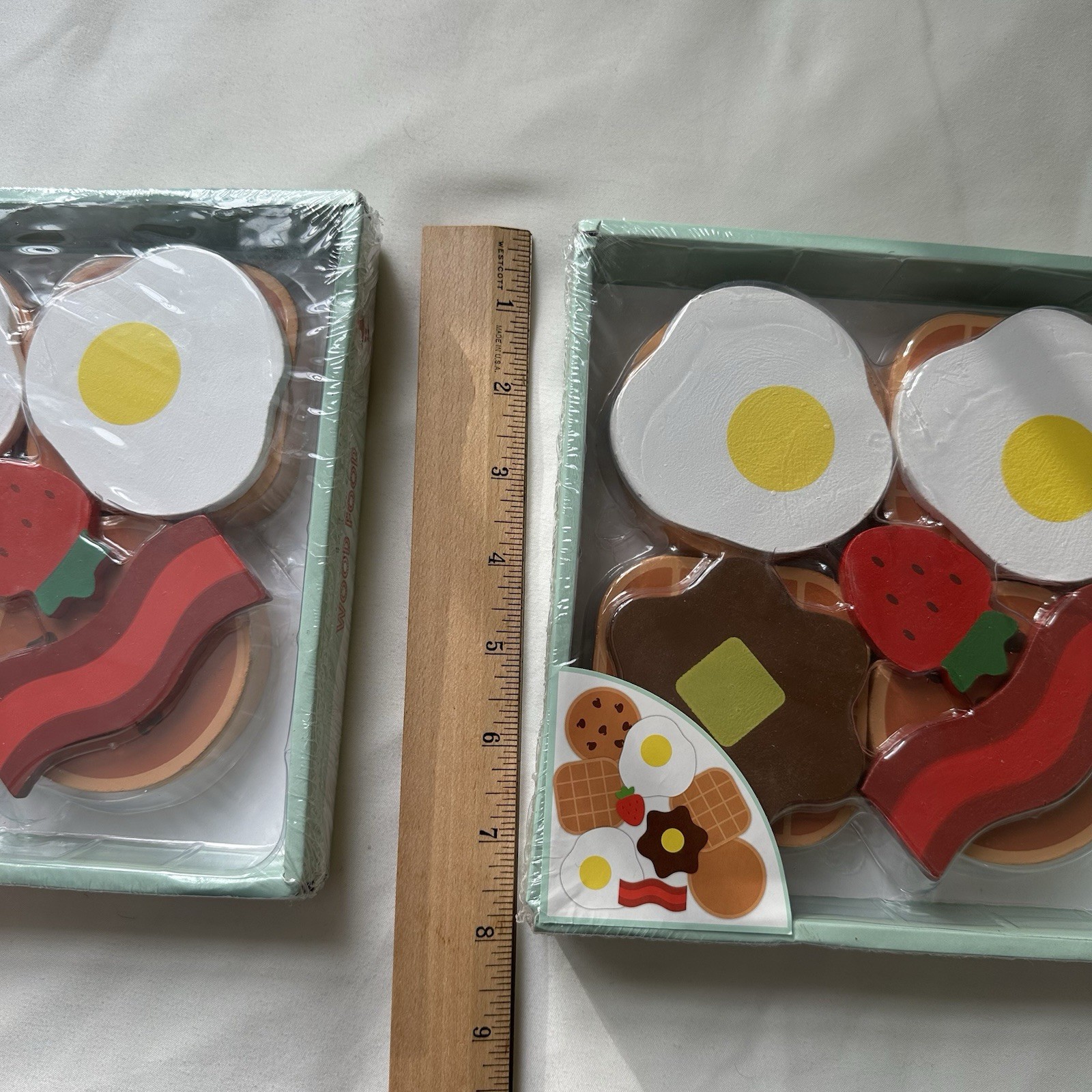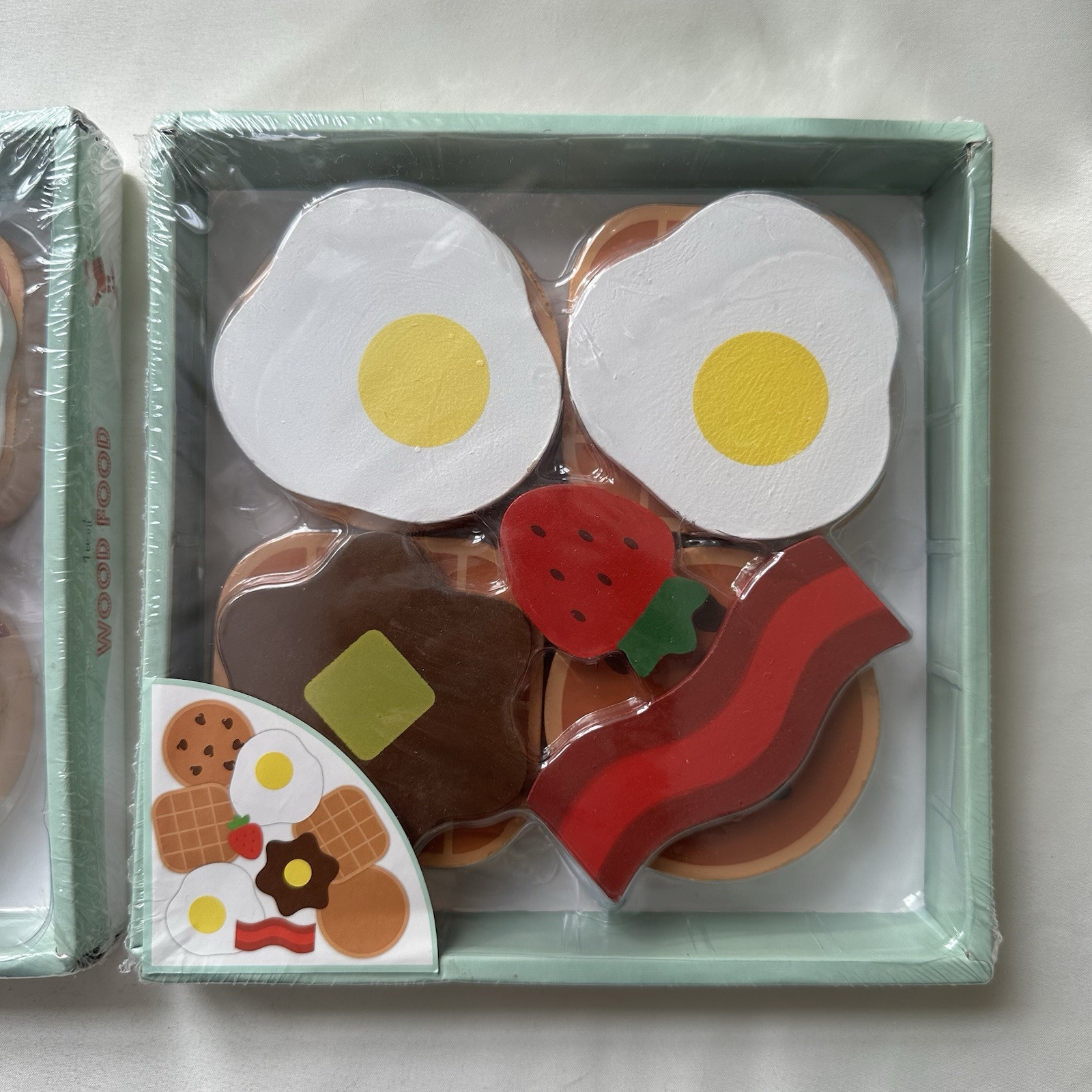 как выглядит Wooden Play Food Set Of 18 Pcs Fruit Eggs Waffle Breakfast Pretend Kitchen фото
