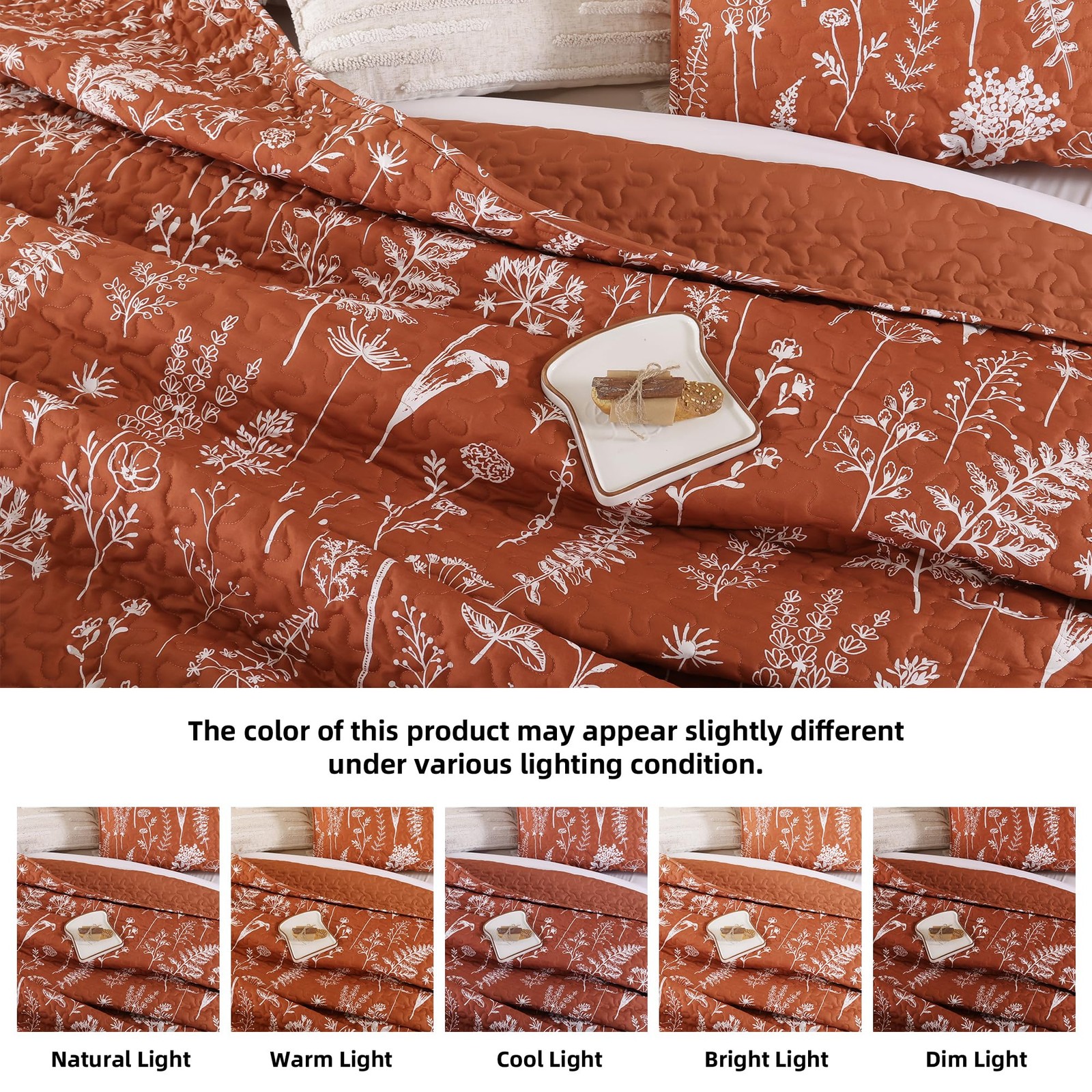 как выглядит Terracotta Bed Spread Boho Quilt with Floral Pattern Microfiber Quilts Set - ... фото
