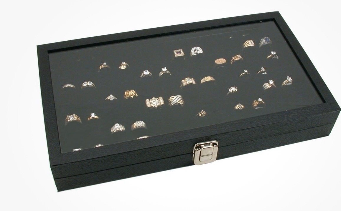 Glass Top Black Jewelry Display Case 72 Slot Ring Tray