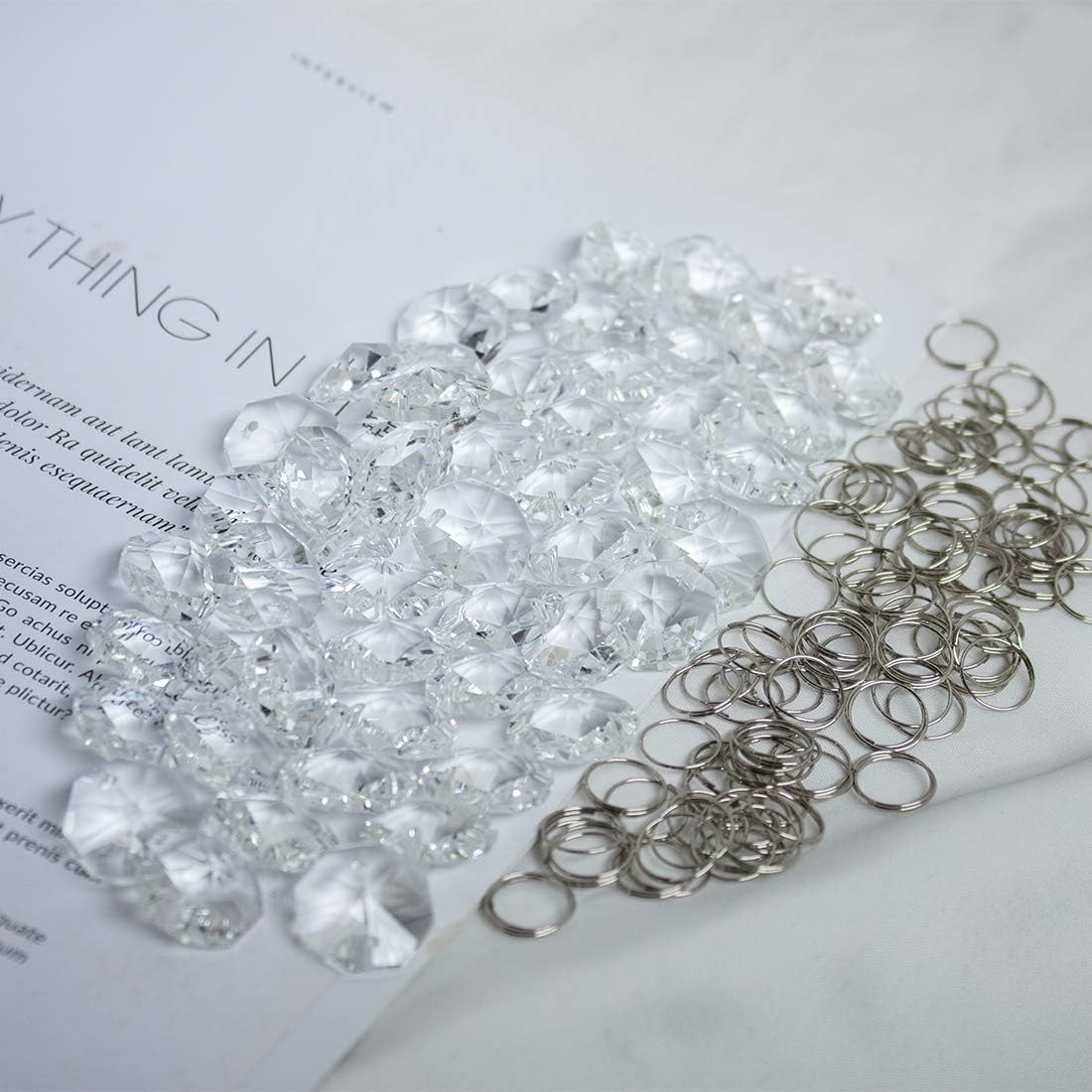 • H D 50pcs 18mm Clear Crystal 2 Hole Octagon Beads Glass Chandelier Prisms Lamp H