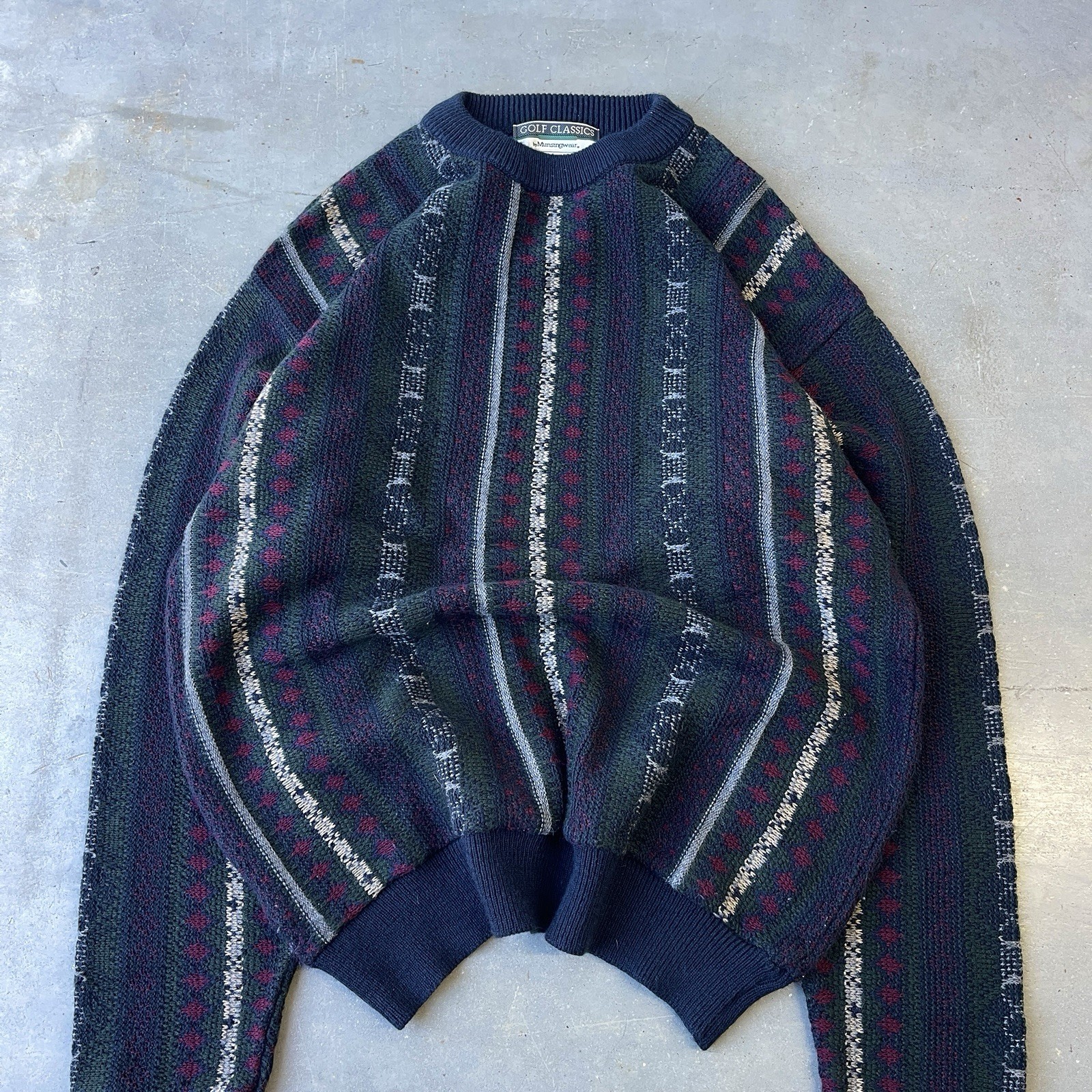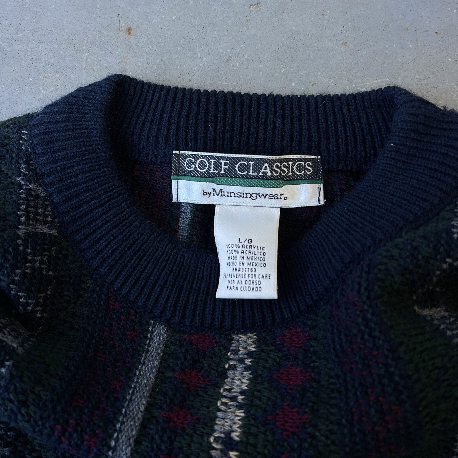 Vintage Golf Munsingwear Navy Multicolor Knit Grandpa Crewneck Sweater Mens L