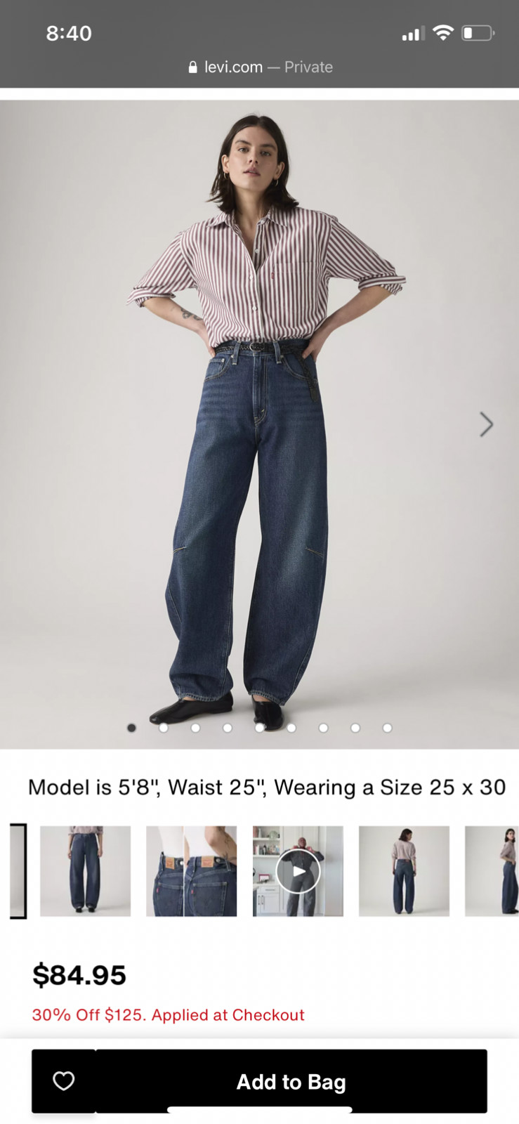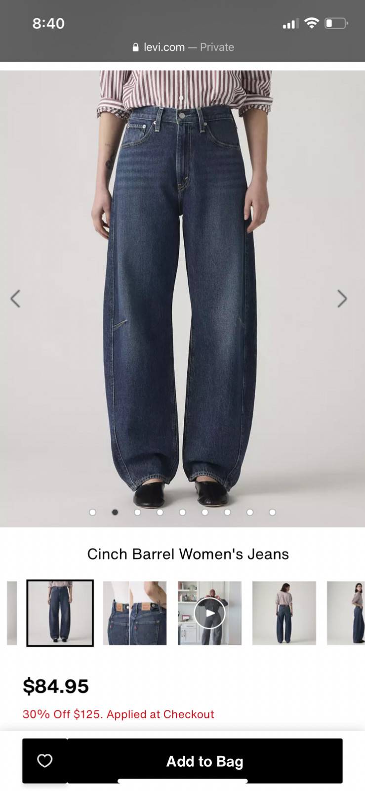 Levi's Women's Cinch High Waist Barrel Jeans New Shades Dark Wash Size 28x31 NWT