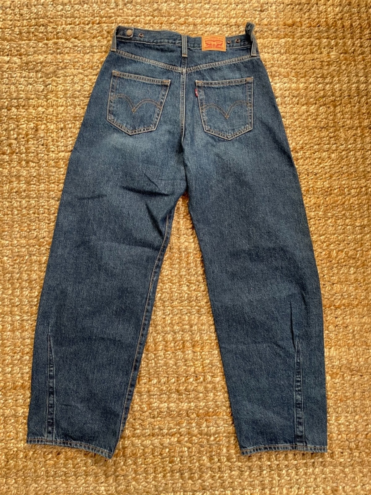 как выглядит Levis Womens Cinch High Waist Barrel Jeans New Shades Dark Wash Size 28x31 NWT фото