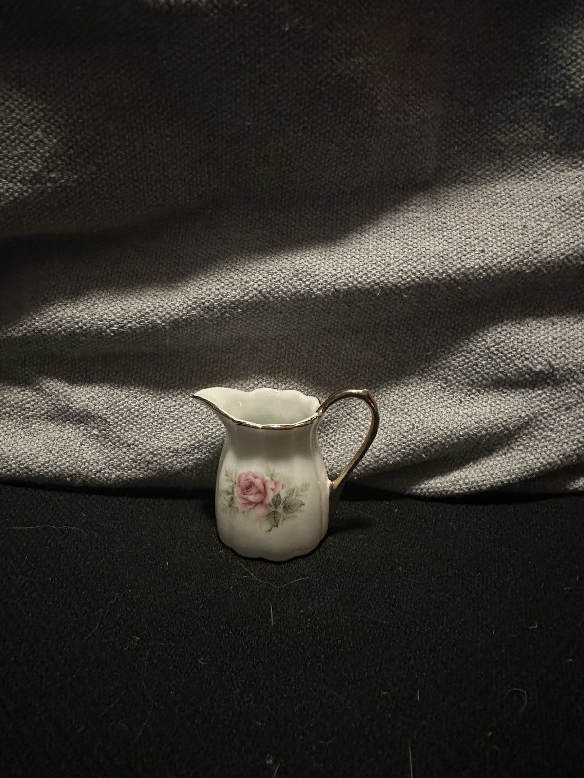 Mini Porcelin Tea Set Pink Flower Design Gold Accents