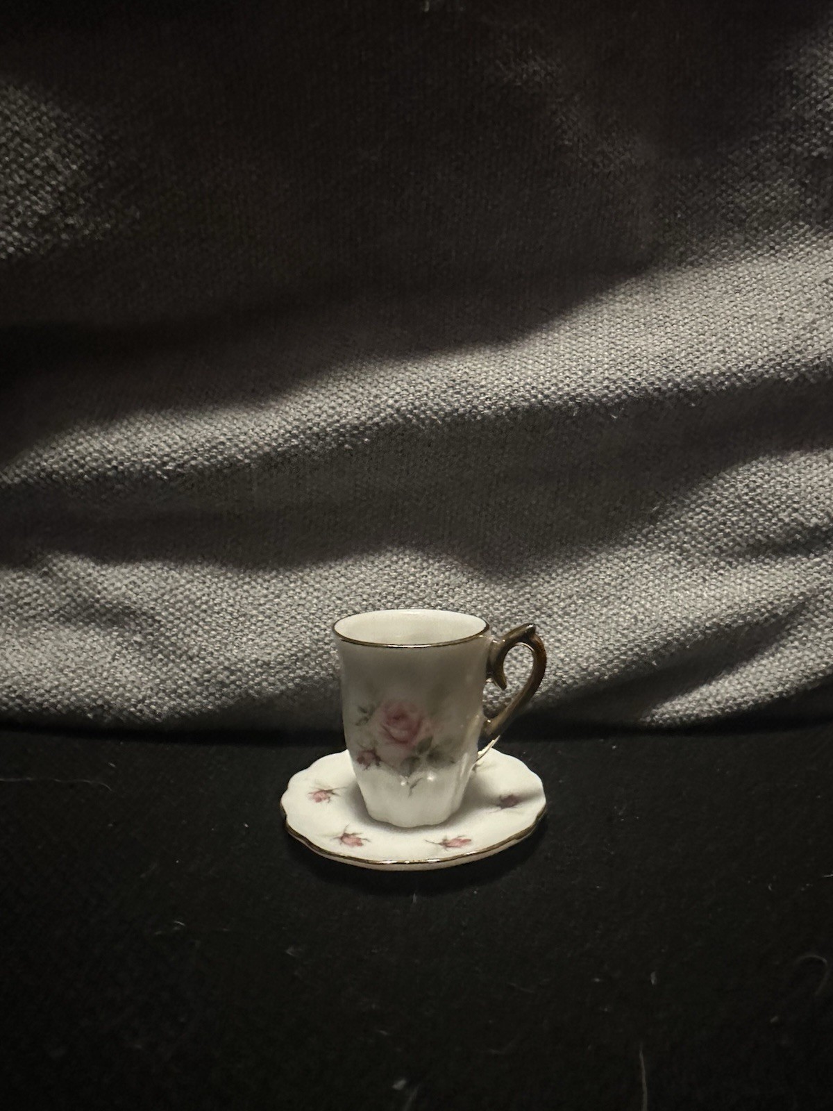 • Mini Porcelin Tea Set Pink Flower Design Gold Accents