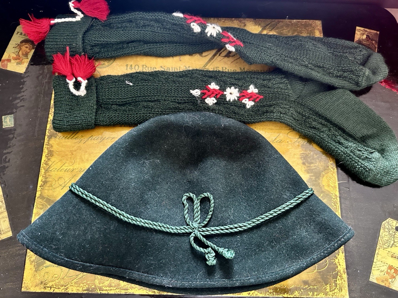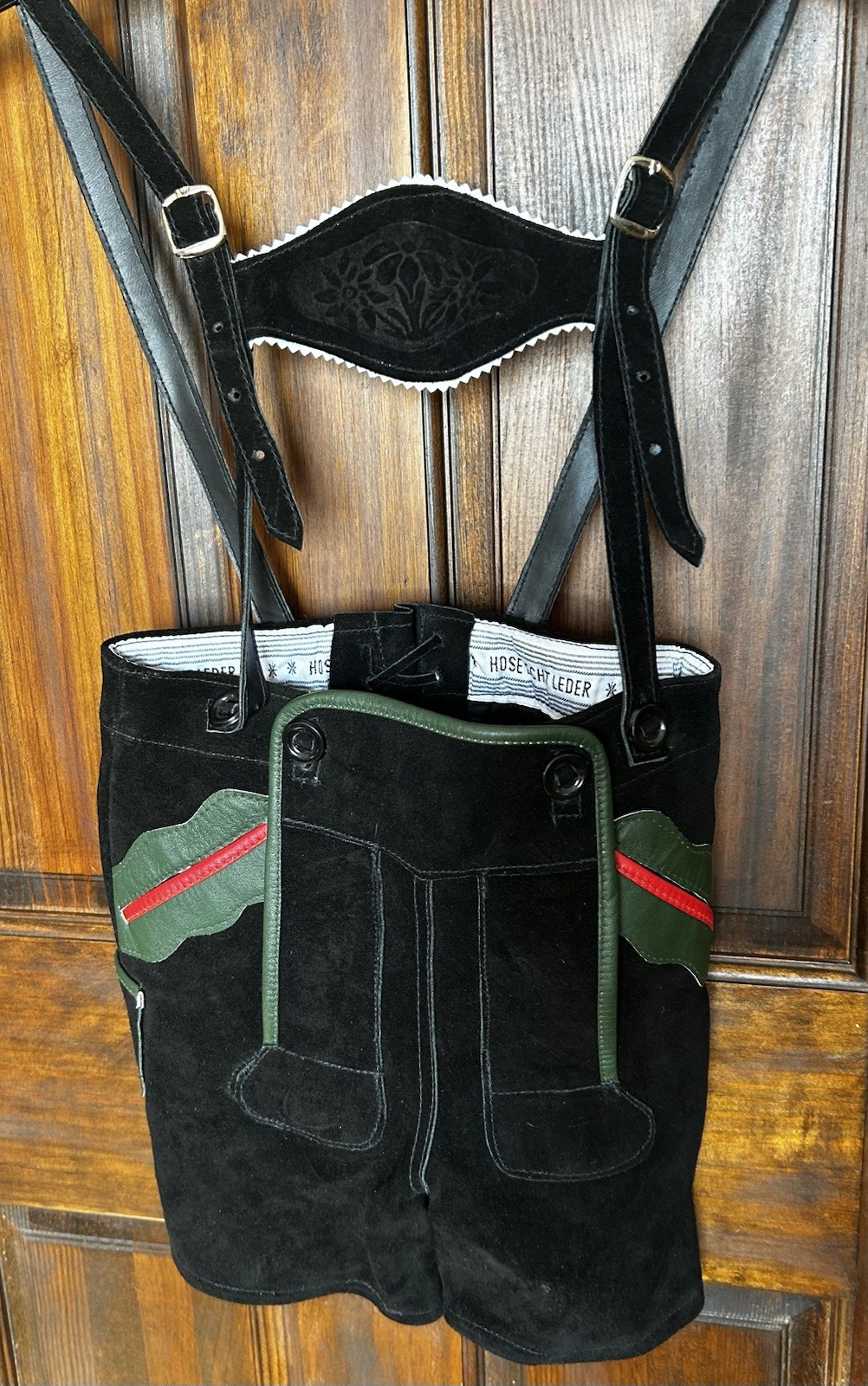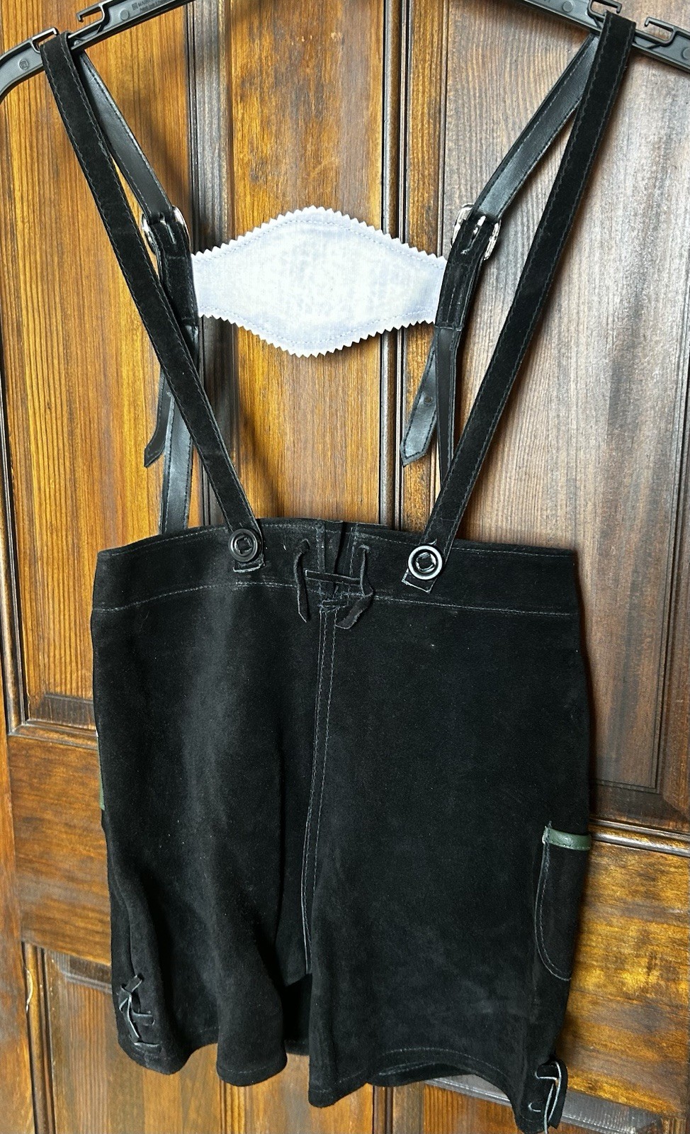 Black Leather Lederhosen Bavarian German Shorts Hat Socks Sz 116 Youth 5-6