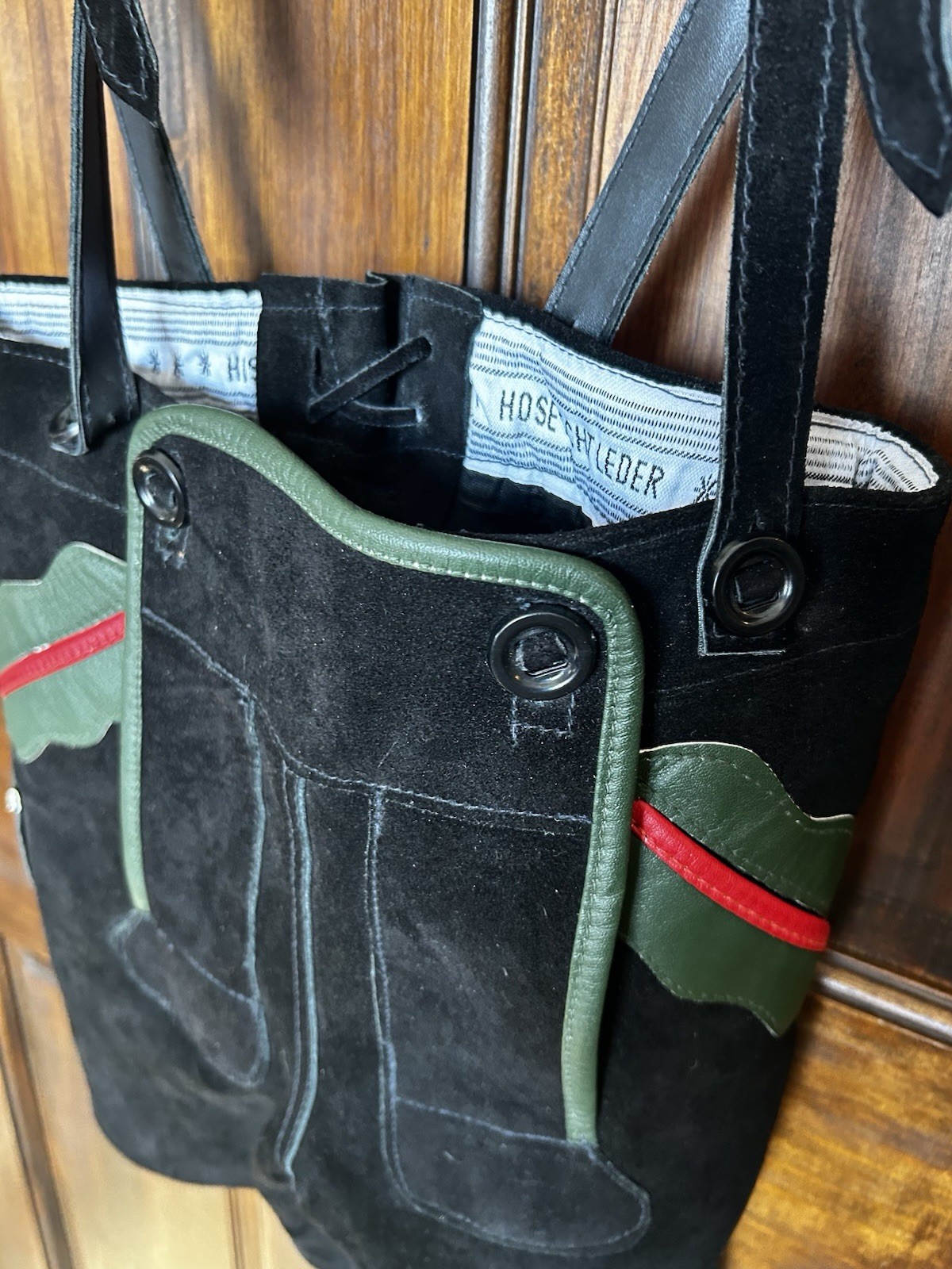 как выглядит Black Leather Lederhosen Bavarian German Shorts Hat Socks Sz 116 Youth 5-6 фото