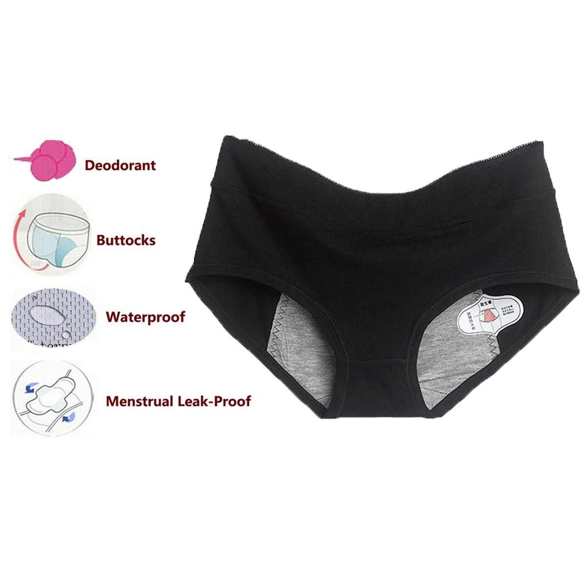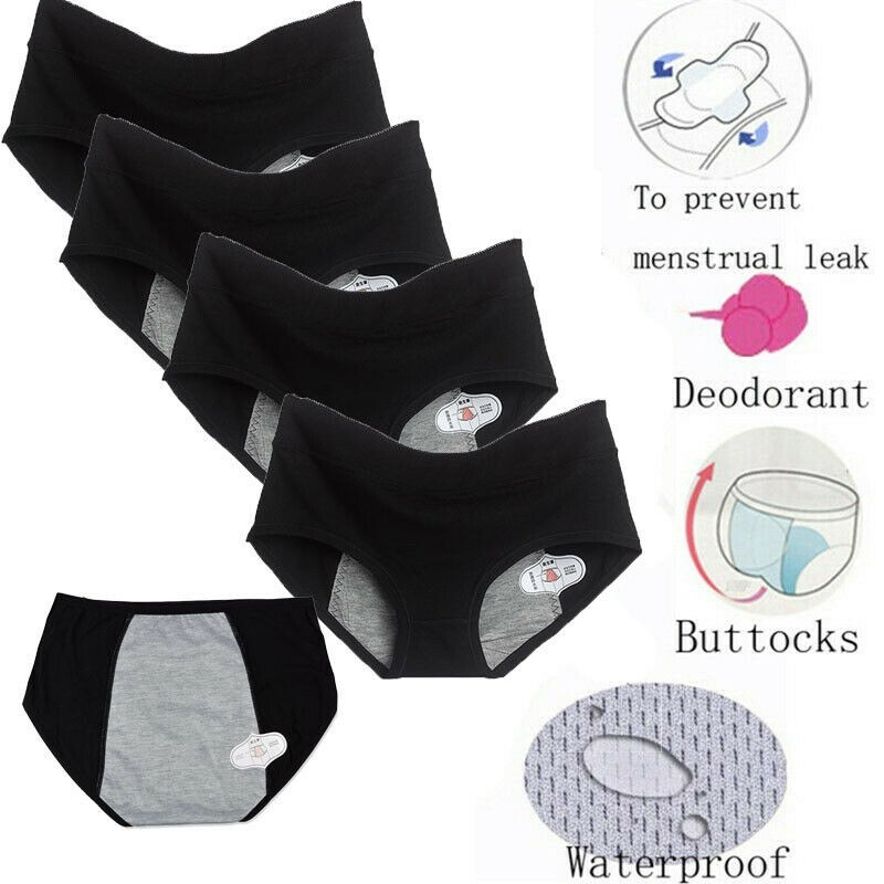 5 Pack Womens Period Panties Teens Black Menstrual Leakproof Underwear Panty