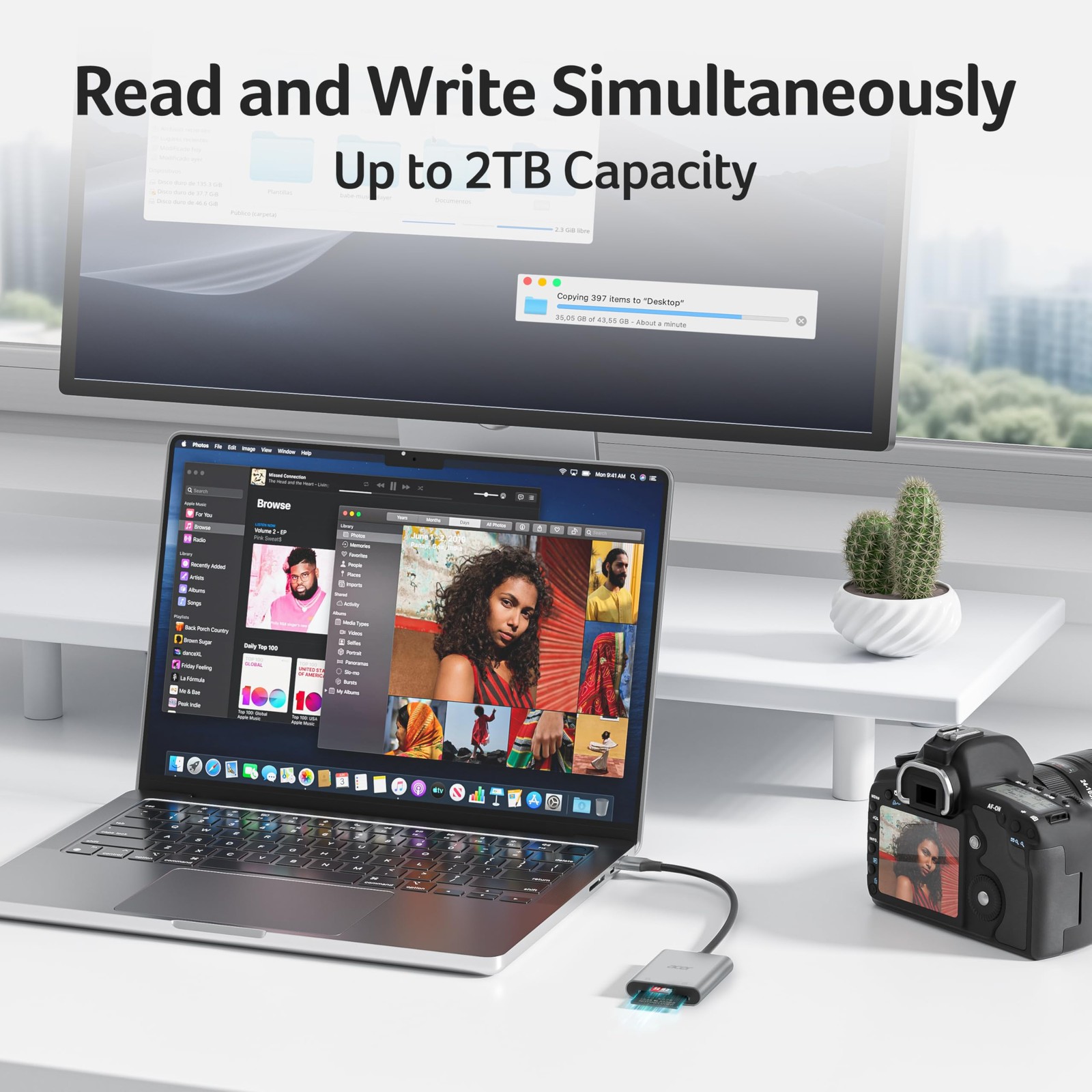 SD Card Reader, USB A 3.0 to Micro Memory Card Reader, Aluminum Dual Slot SD ...
