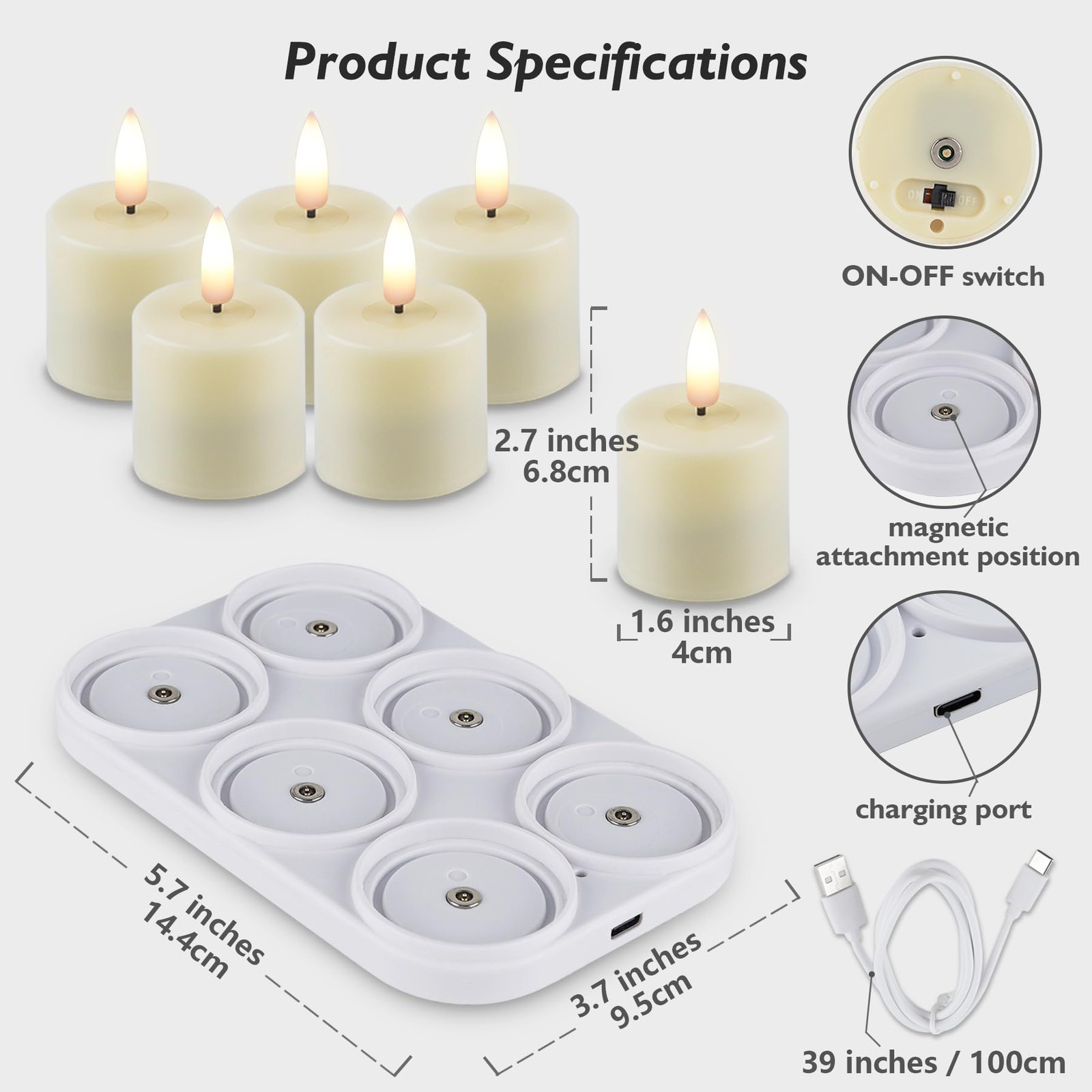 Rechargeable Flameless Votive Candles with Timer, LED Tealight, Remote