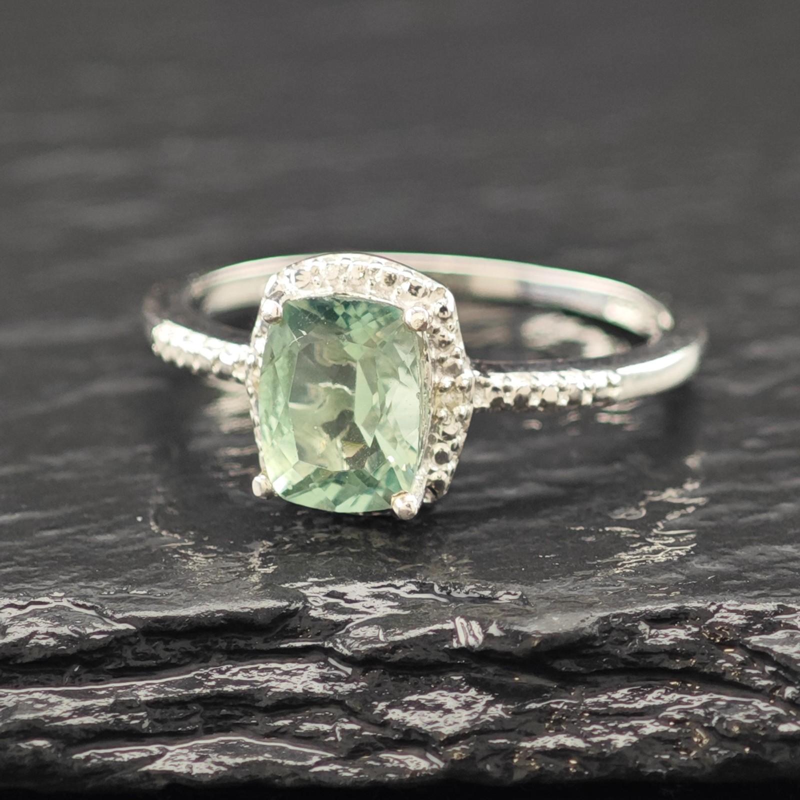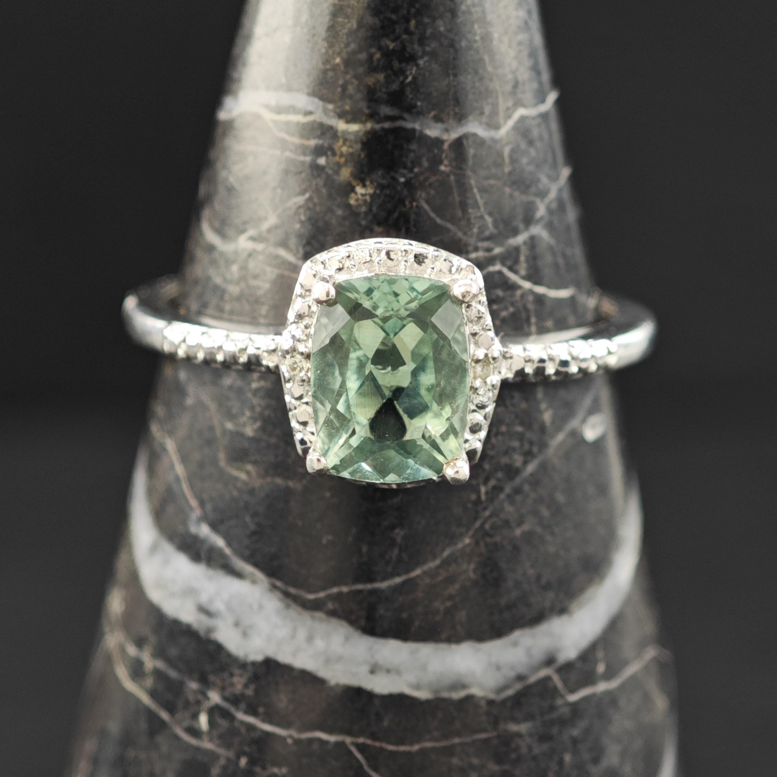 как выглядит Sterling Silver Ring Green Quartz Stone Size 9 фото