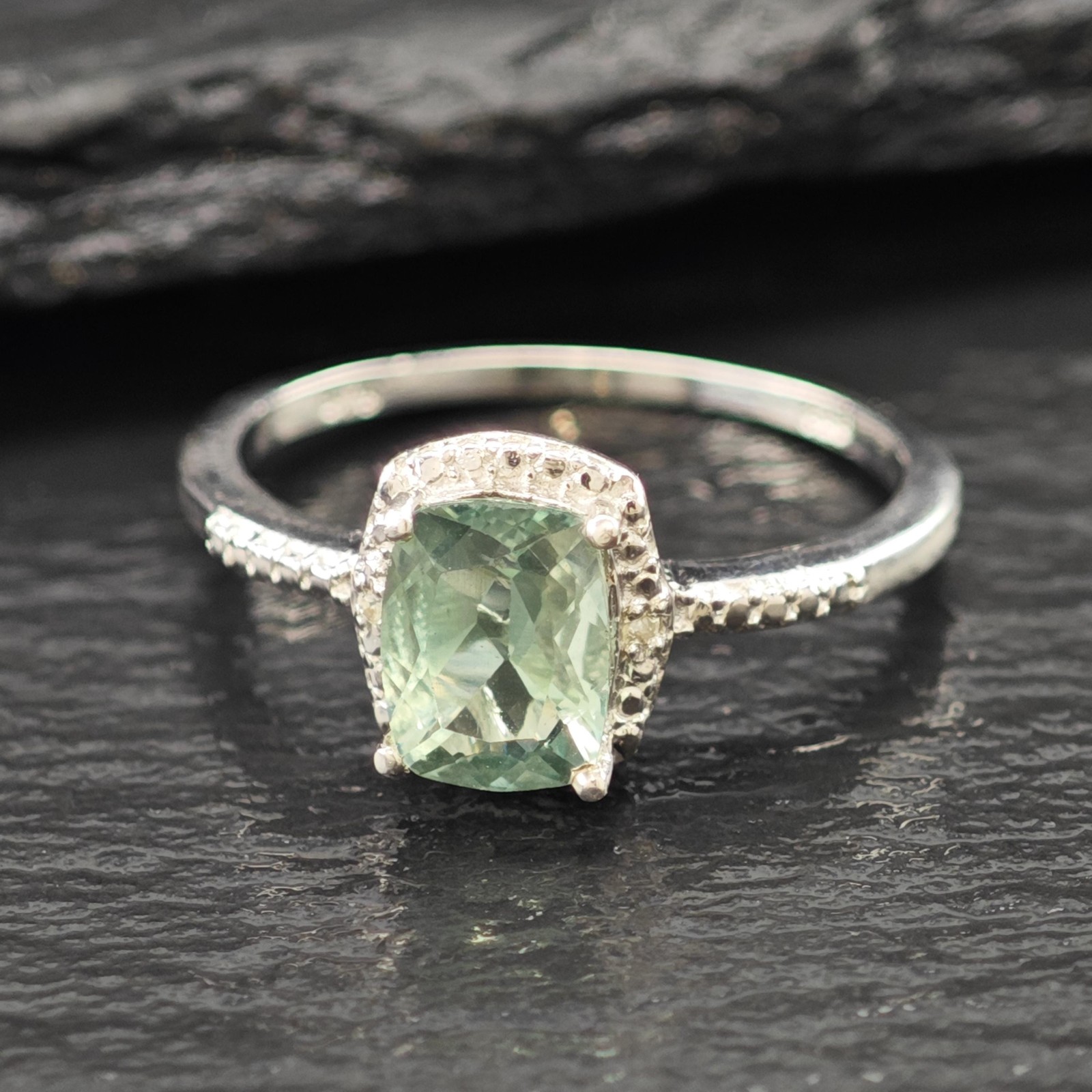Sterling Silver Ring Green Quartz Stone Size 9