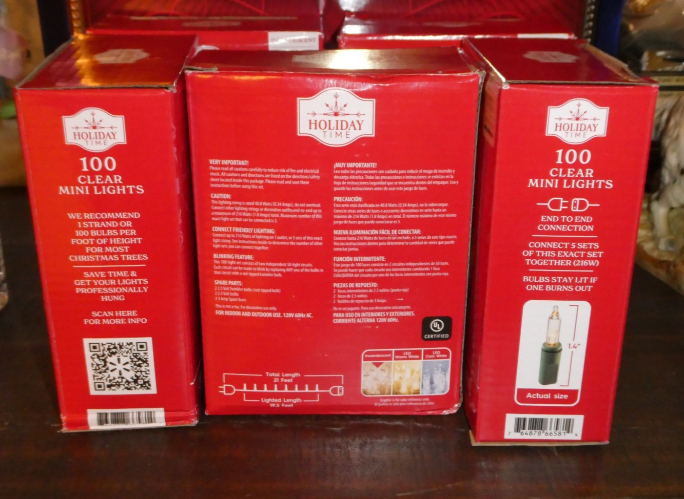 Holiday Time 100 Clear Mini Christmas Lights Strand Green Wire Set of 5 New