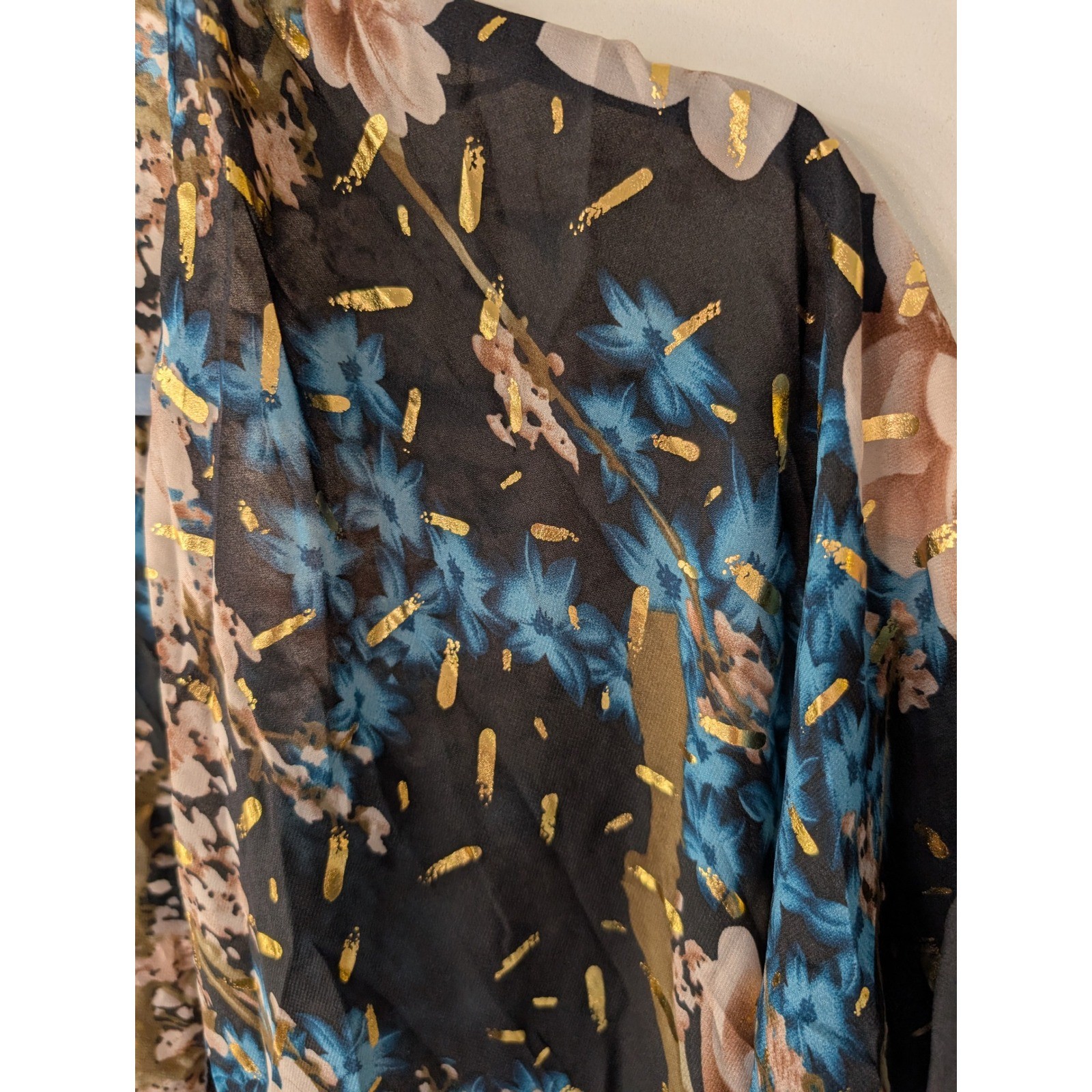 как выглядит Jessica McClintock Kimono Floral Print One Size Lightweight Gold Accents NWTs фото