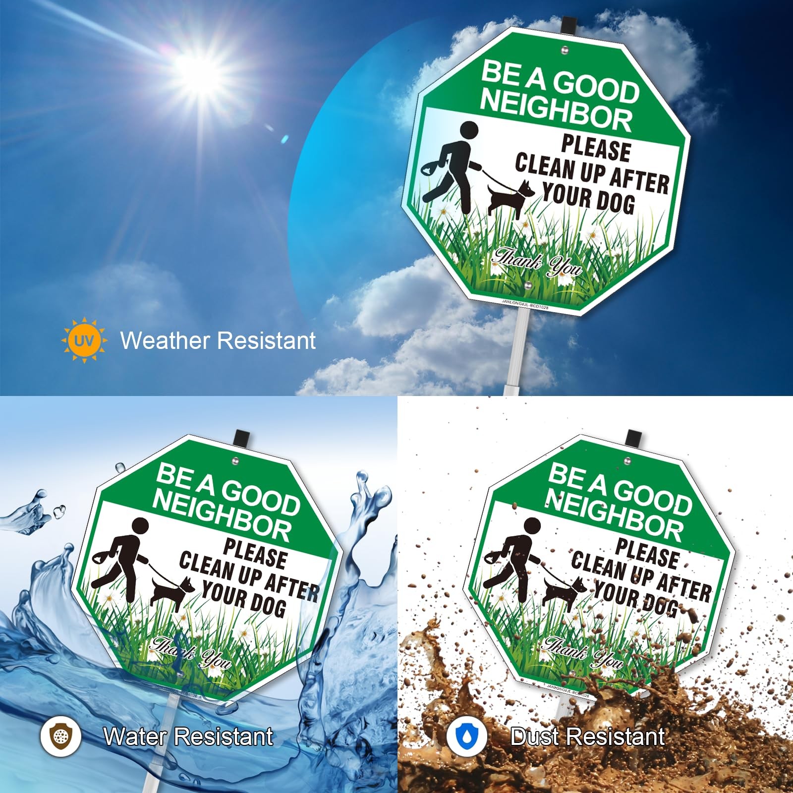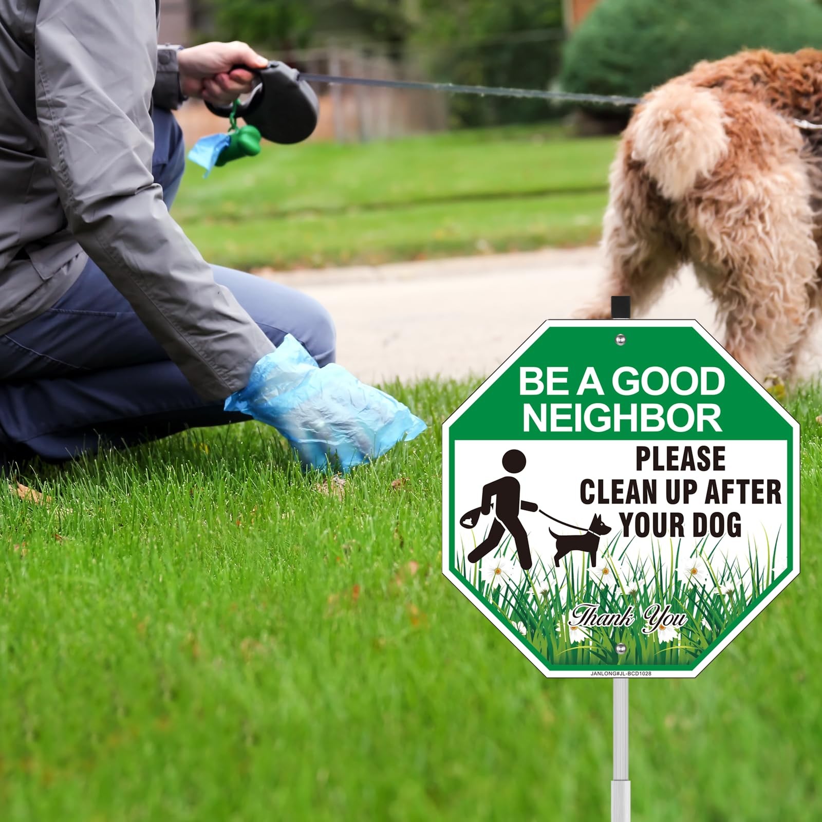 Clean Up After Your Dog Sign with Stake, 2 Pack 10W x 28H Aluminum Be A Goo...