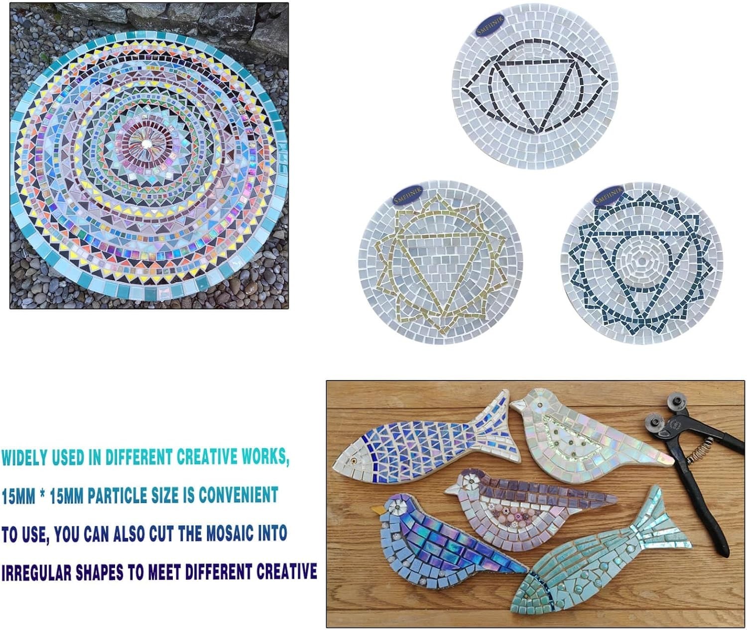 SMEIINIK 3.3lb Bulk Single Iridescent Color Mosaic Tiles for Crafts, Glass Mosai