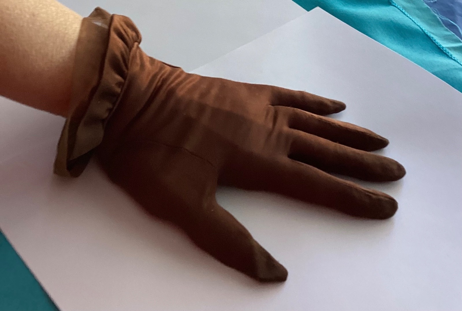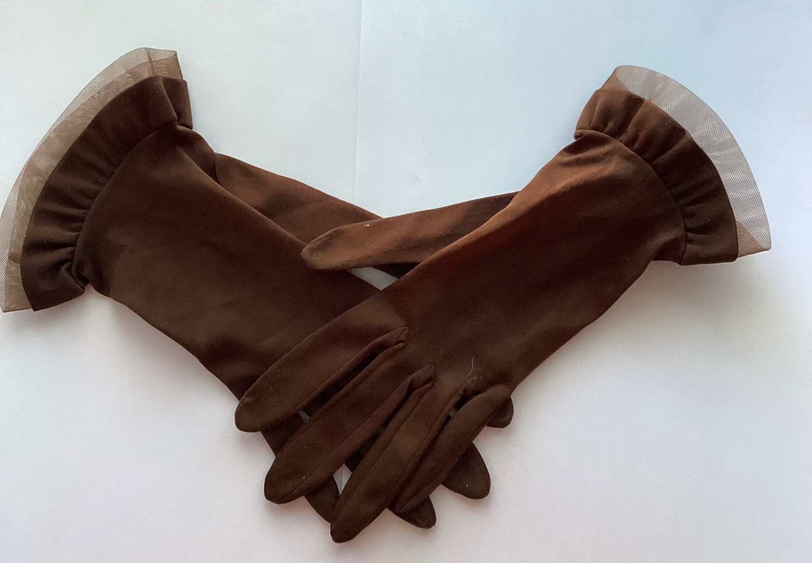 как выглядит Vintage 50s Sheer Mocha Brown Gloves Wrist Length S фото