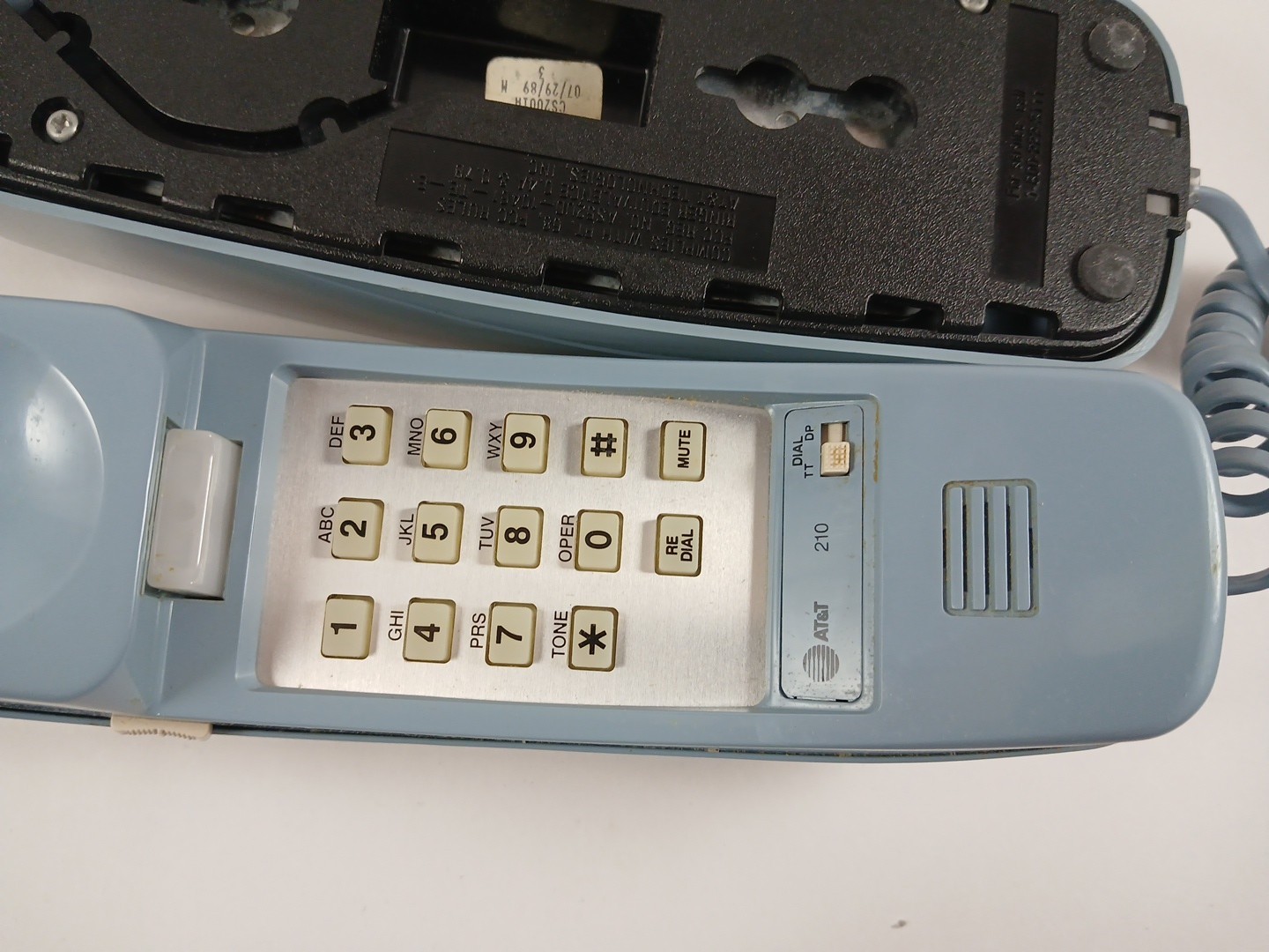 как выглядит Vtg AT T Trimline Corded Blue Push Button Touch Tone Phone 1989 фото