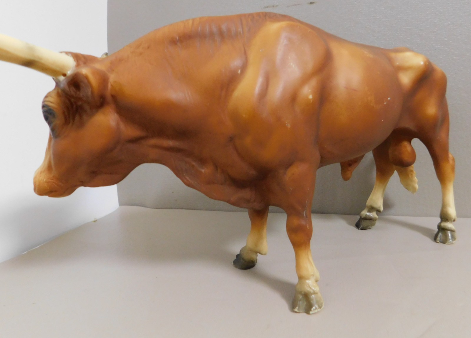 как выглядит Vintage Breyer Texas Longhorn Bull 75 Red Brown Mold 1960s-80s USA фото