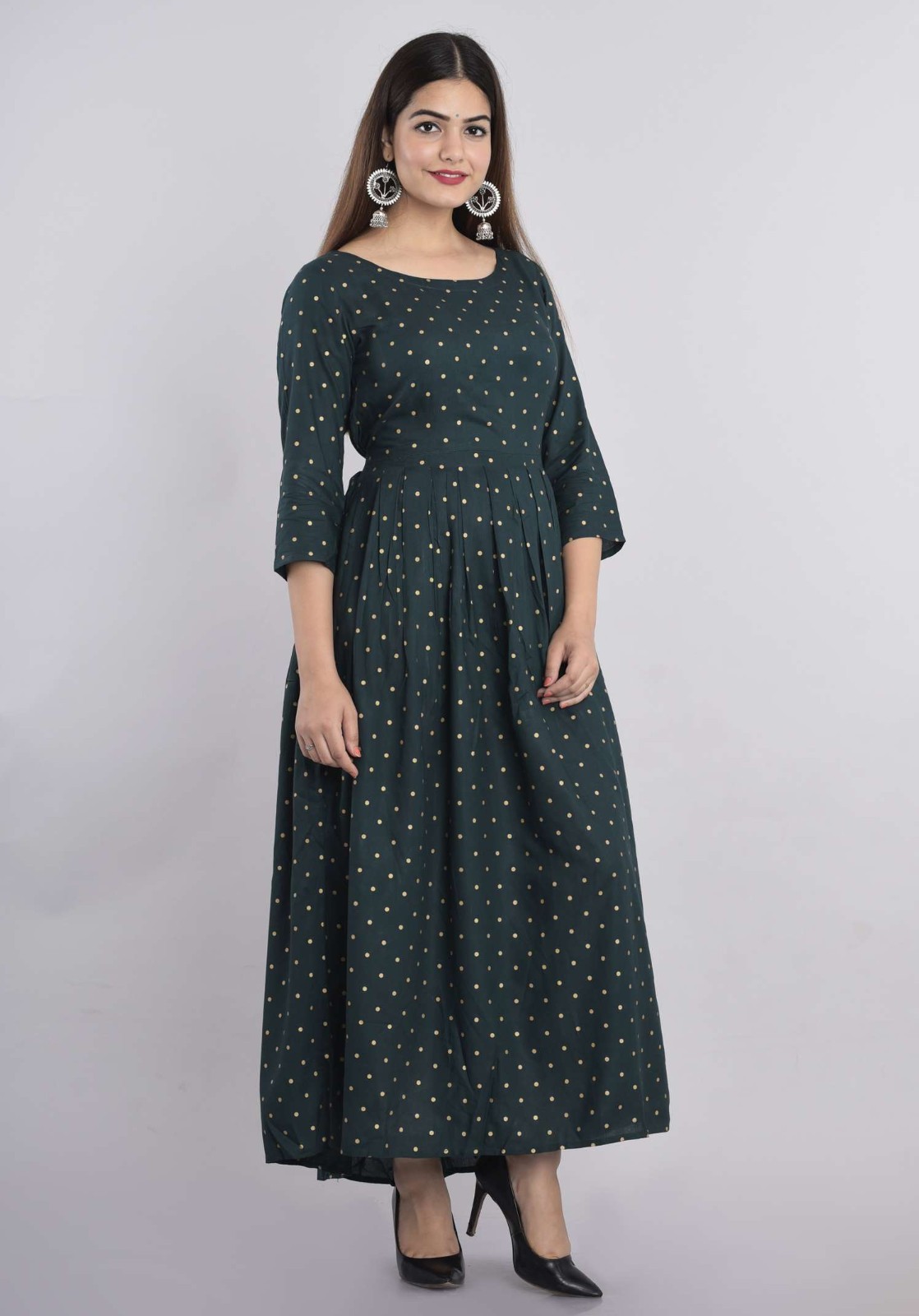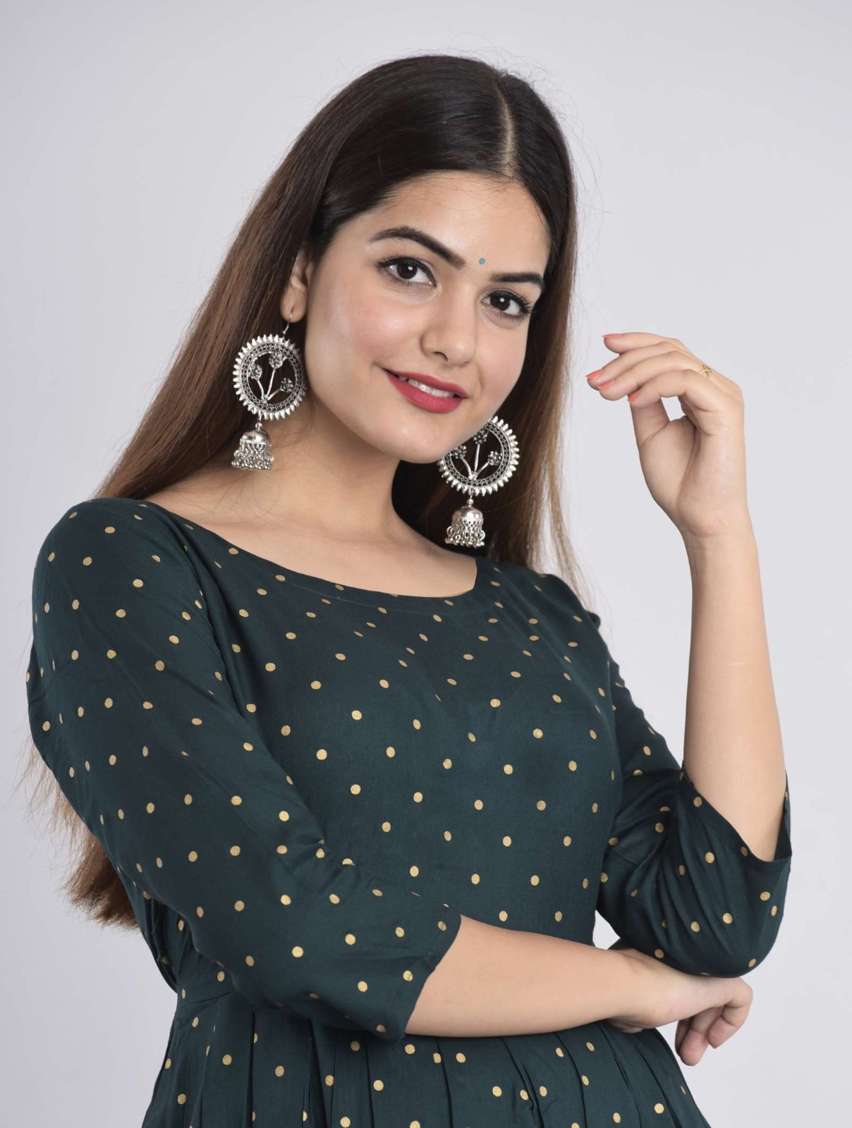 Green Kurta Women Polka Dot Flared Anarkali Kurti Gown Dress NEW