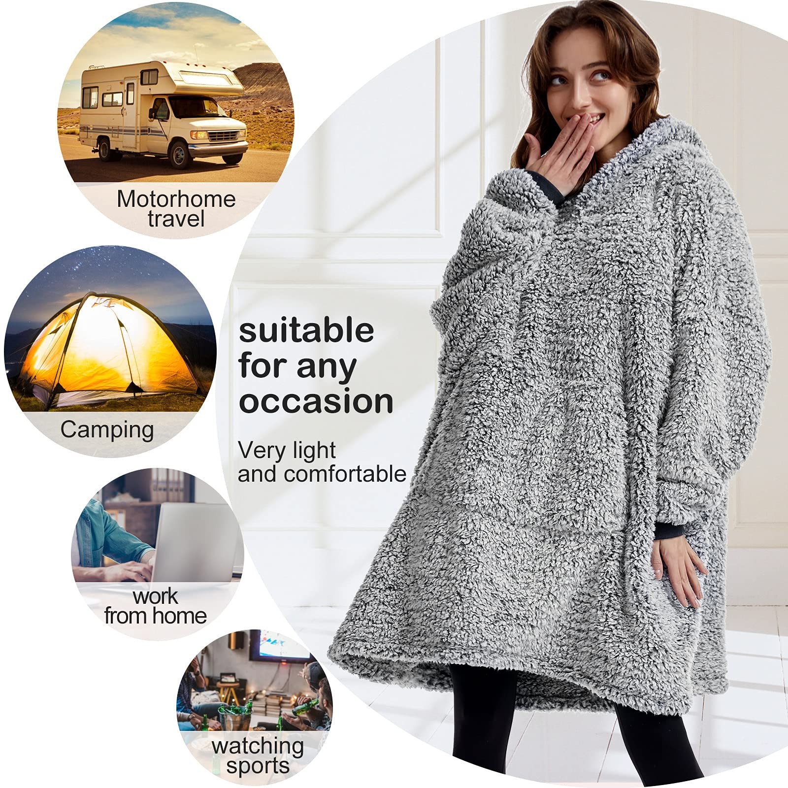 Cozy Sherpa Wearable Blanket Hoodie for Adults Kids - Oversized Black