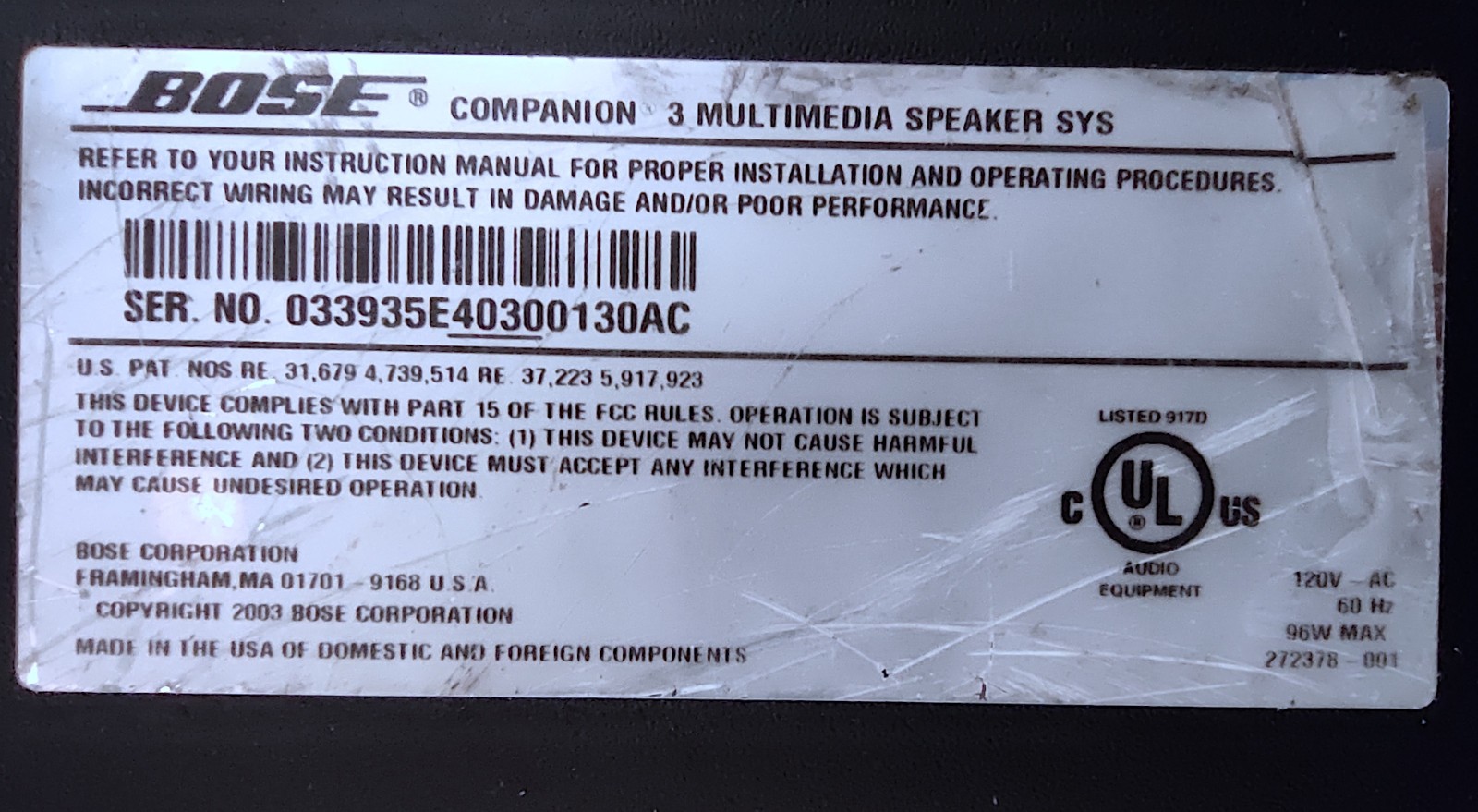 Bose Companion 3 Subwoofer and Satellites Audio System w Mod Please Read