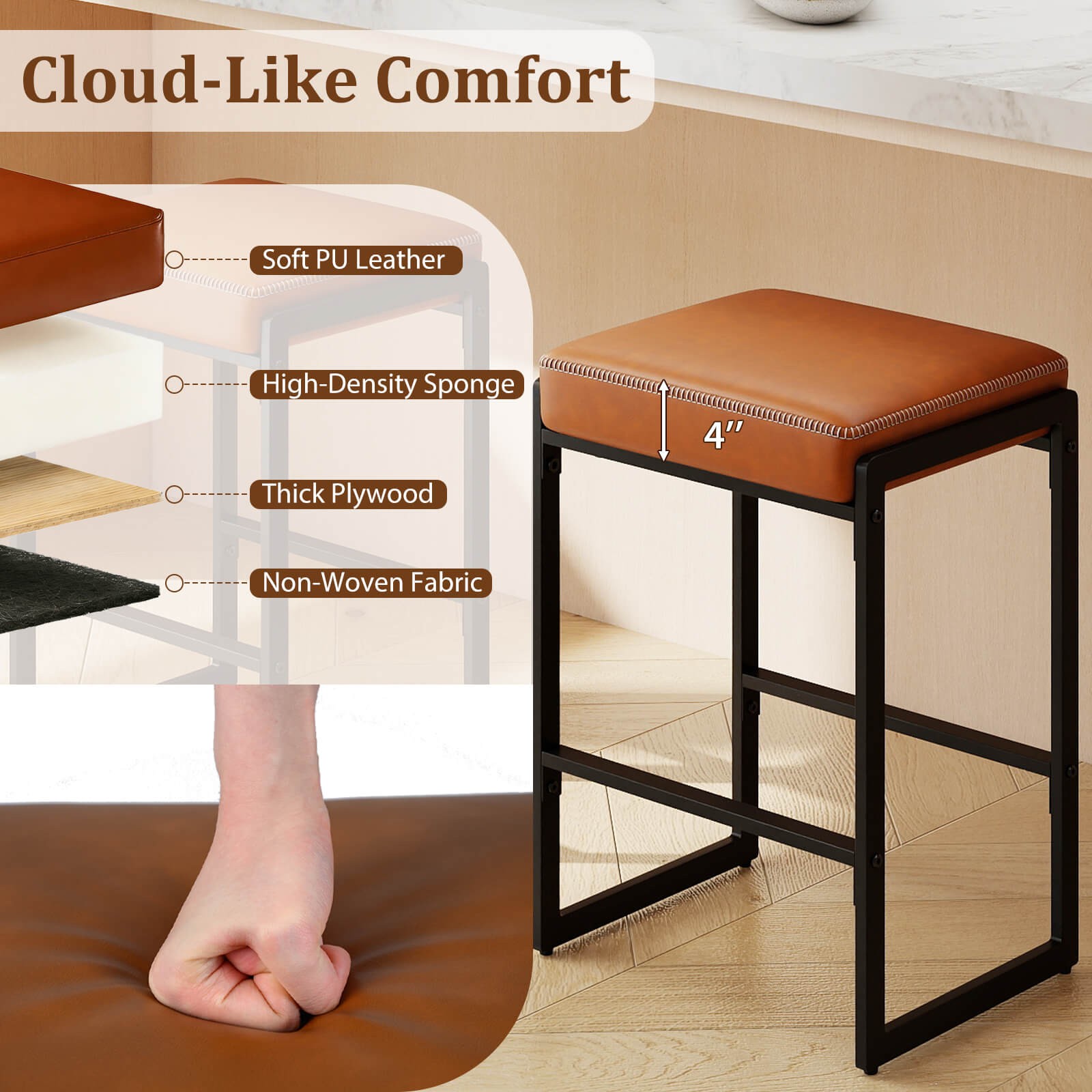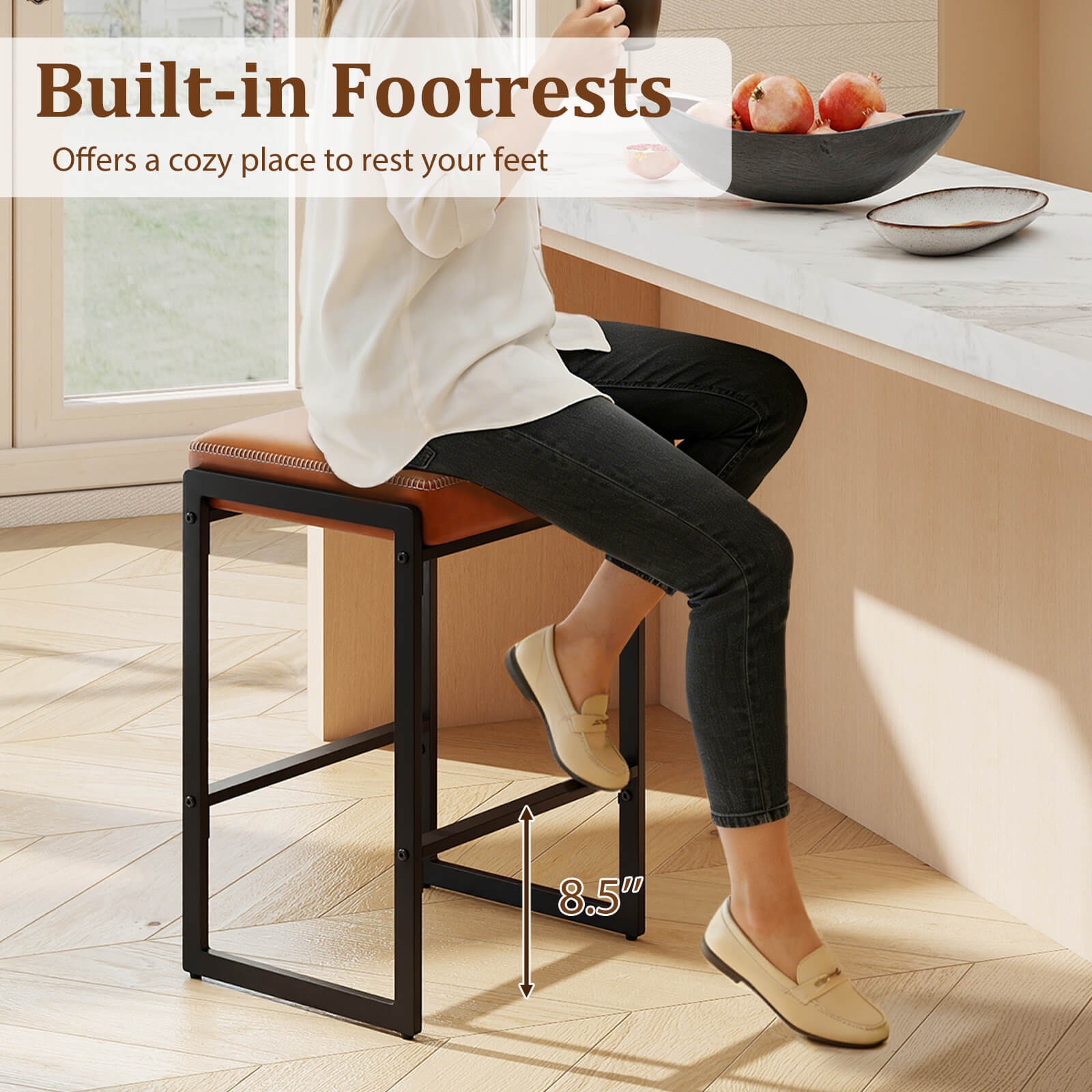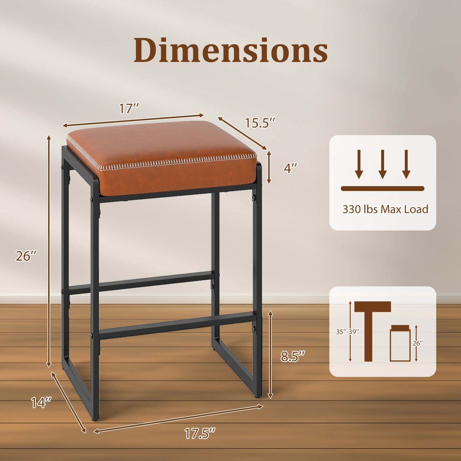 26 Bar Stools Set of 4 w/Faux Leather Upholstered Seat, Metal Legs, Footrests