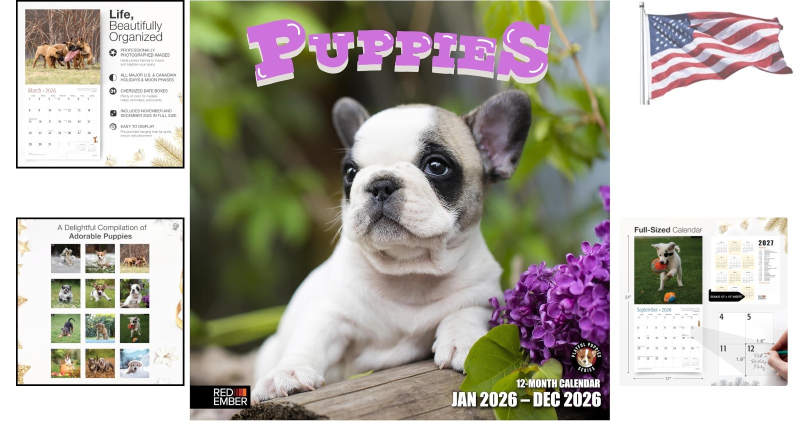 Adorable Puppies 2026 Wall Calendar - 12 x 24 Perfect Gift for Dog Lovers