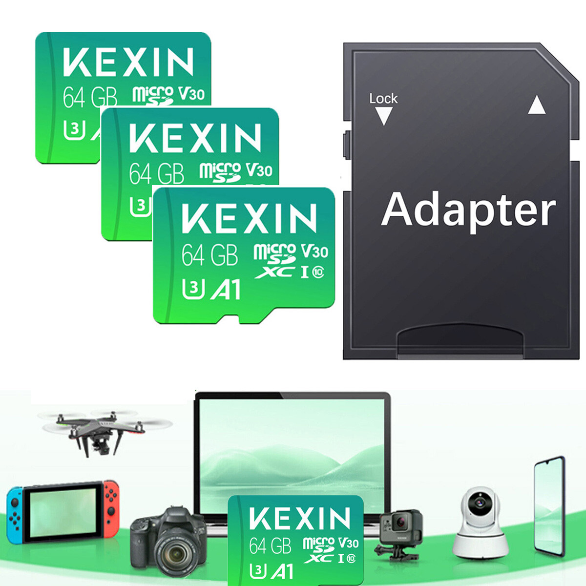 1/2/3PCS Micro SD SDXC Class 10 UHS-I TF Card Flash 64GB Memory Cards For Camera