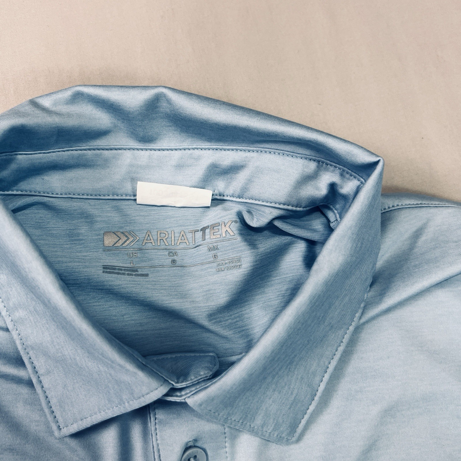 как выглядит Ariat Tek Polo Shirt Mens Large Blue Golf Stretch Breathable Beach Western EUC фото