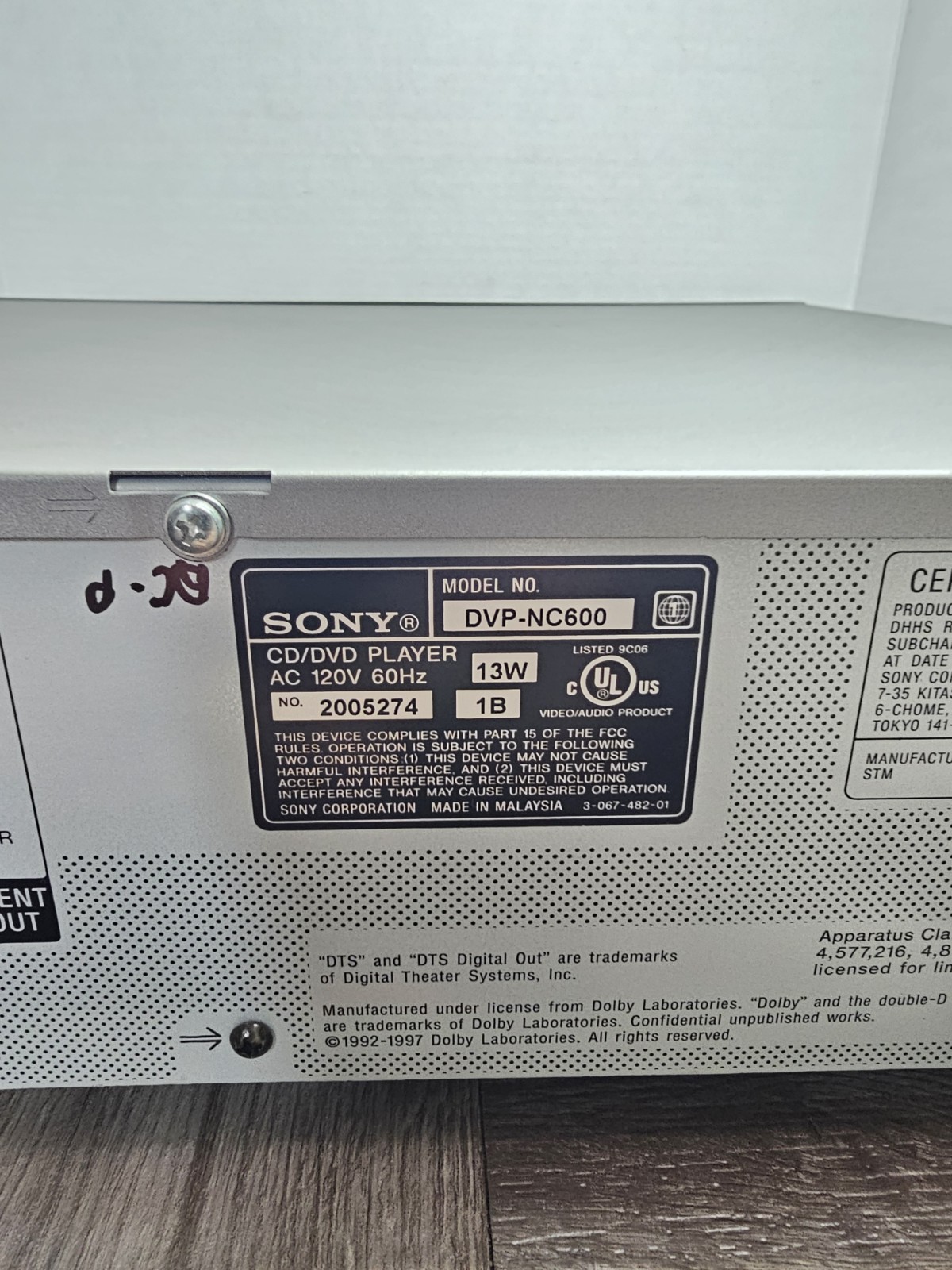 Sony DVP-NC600 DVD CD Player 5 Disc Changer Carousel No Remote TESTED
