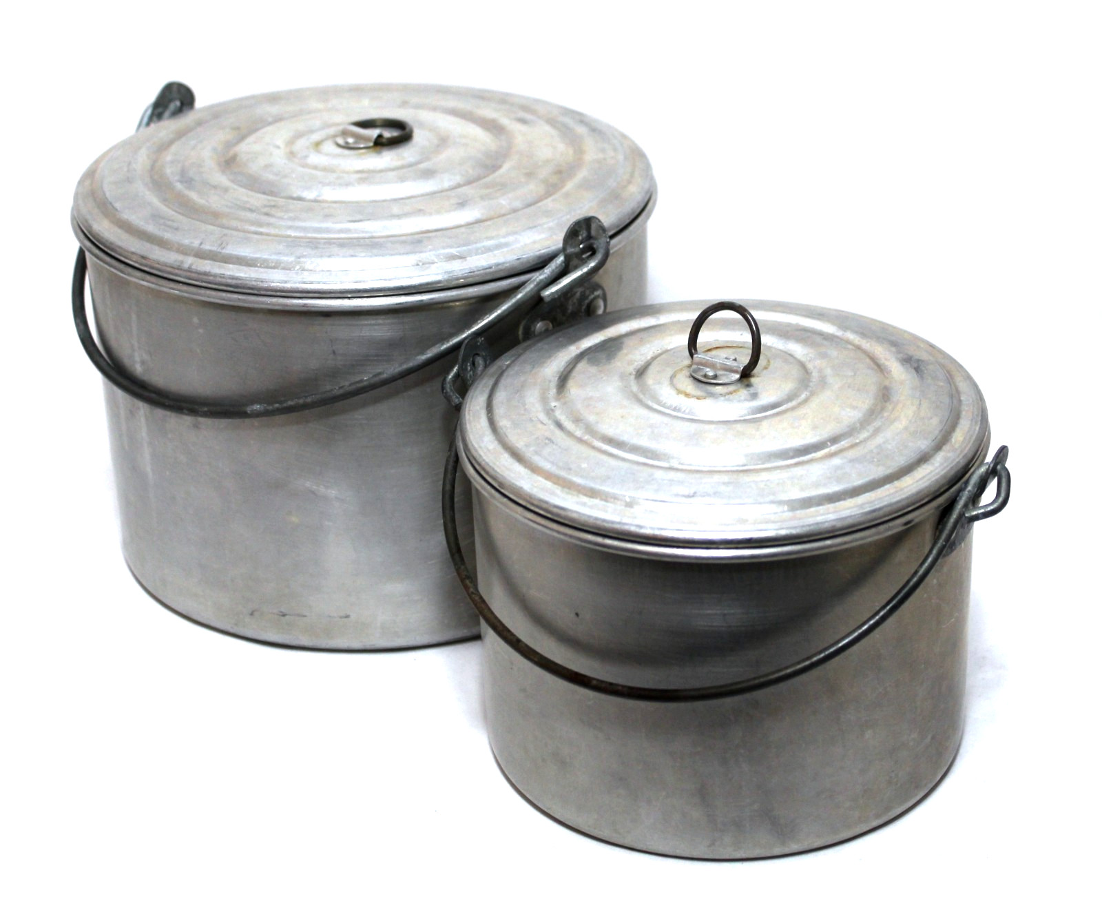 Vintage Aluminum Camping Cooking Pots with Lids Nesting Set 2