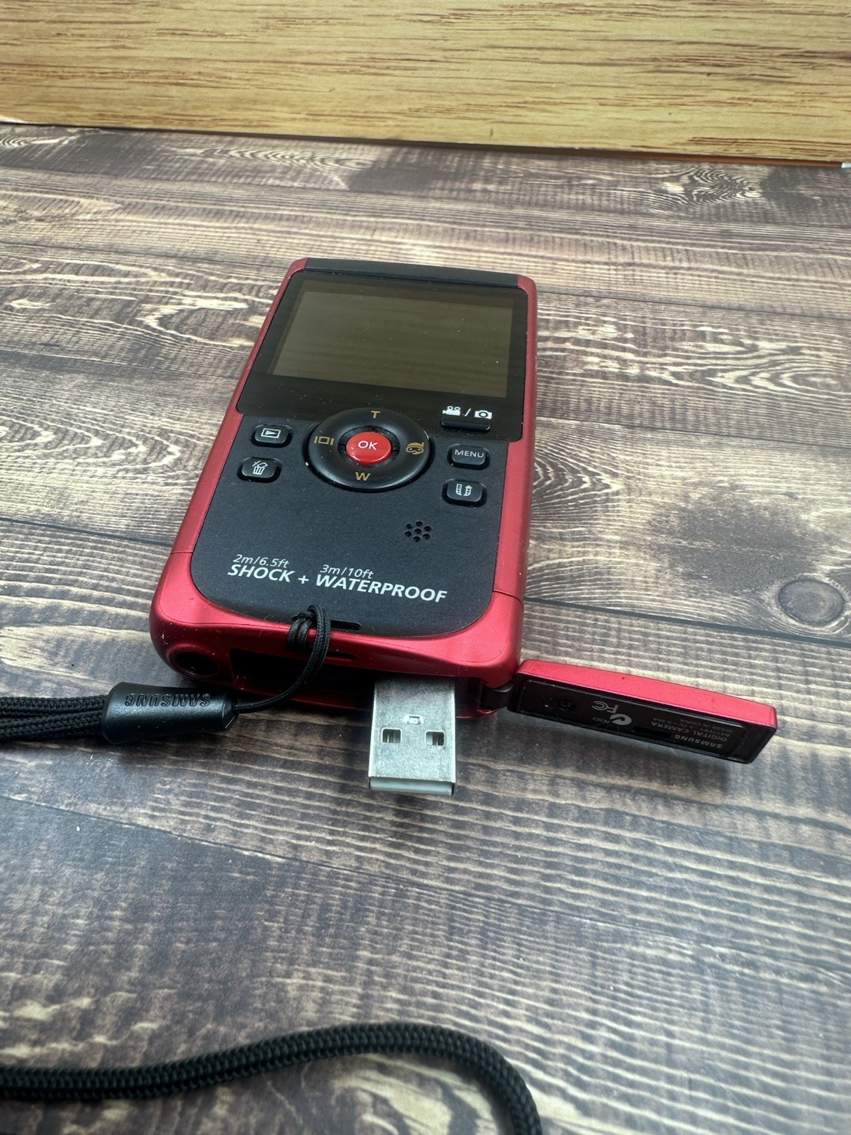 Samsung HMX-W200 Red Black Full HD Waterproof Pocket Camcorder W/ Strap