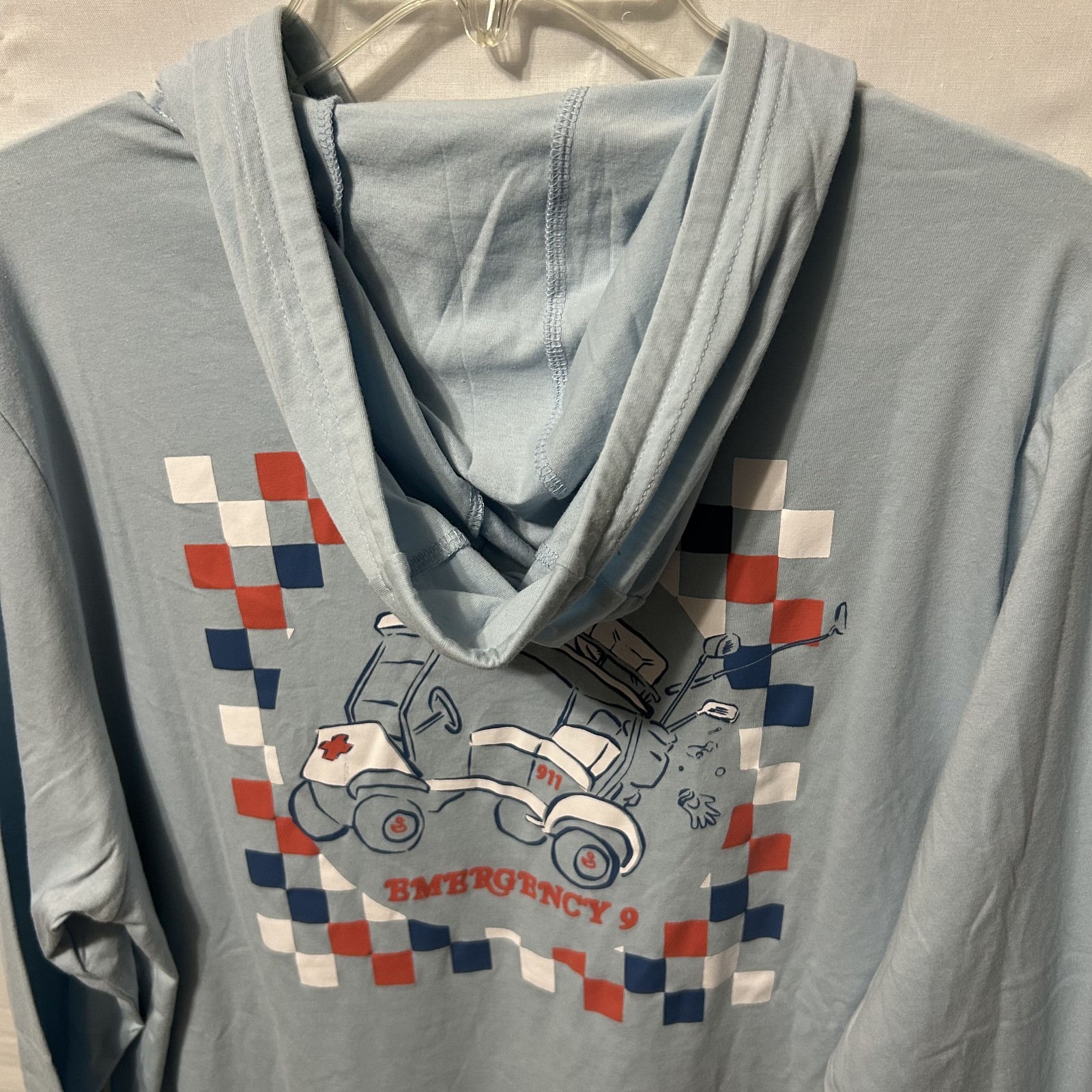 как выглядит Swannies Golf Hoodie Pullover Emergency Nine XL Sky Blue Lightweight NWT фото