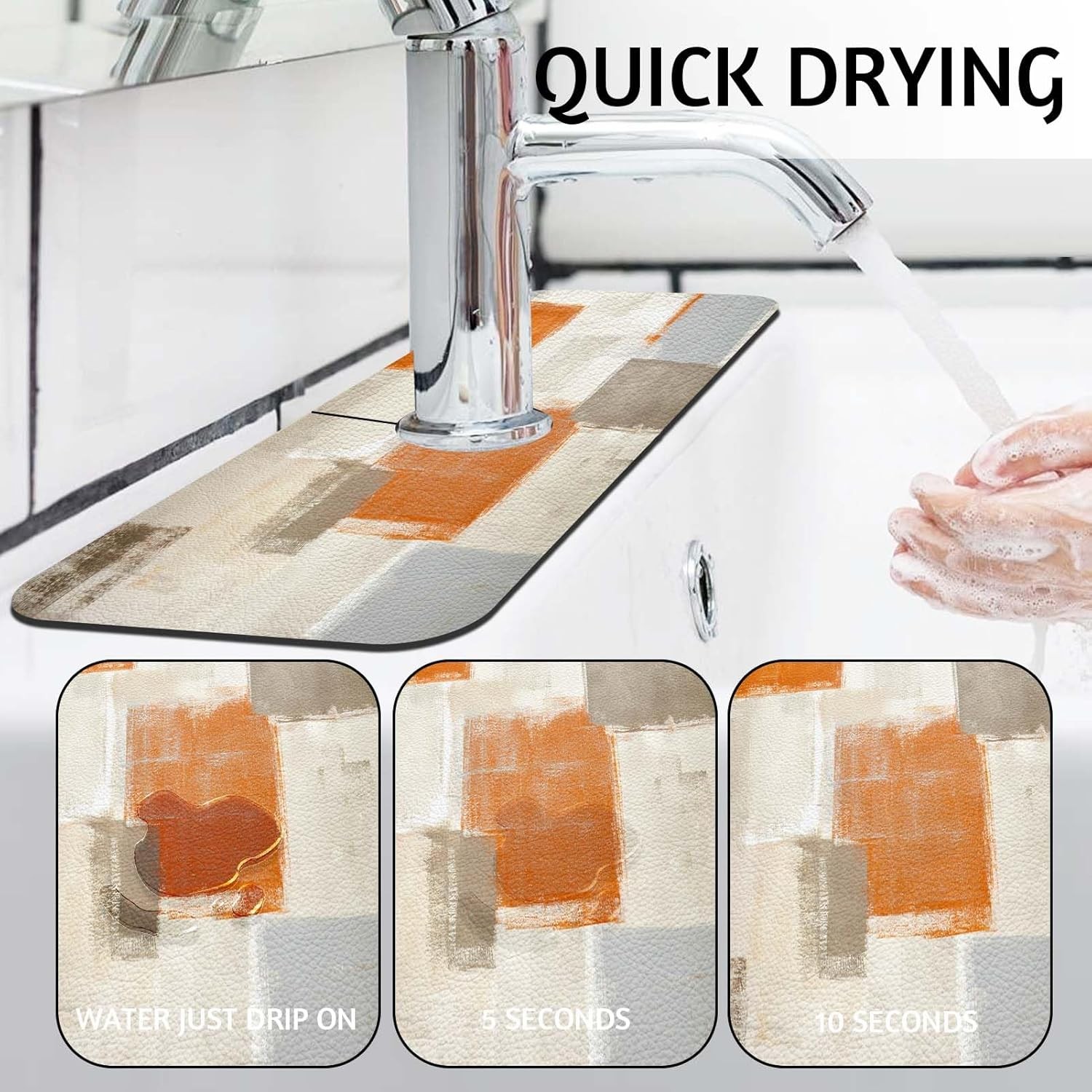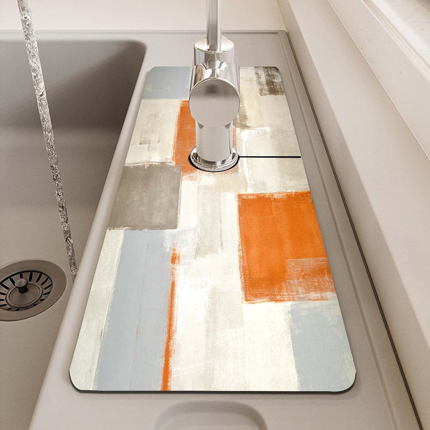 Orange Kitchen Sink Faucet Mat Splash Guard Absorbent Quick-Dry Kitchen Sink Mat