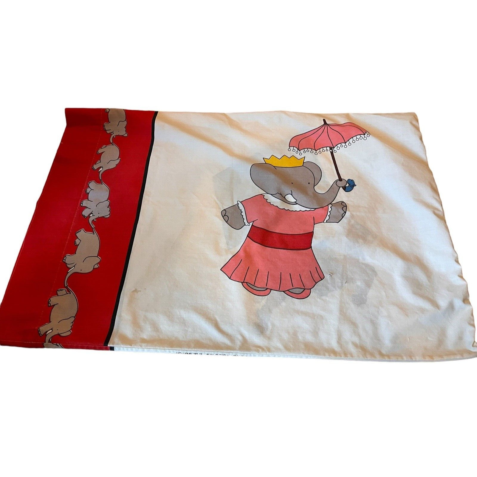Cannon Babar Pillowcase Vintage Blue Red Elephants Read full description/ condit
