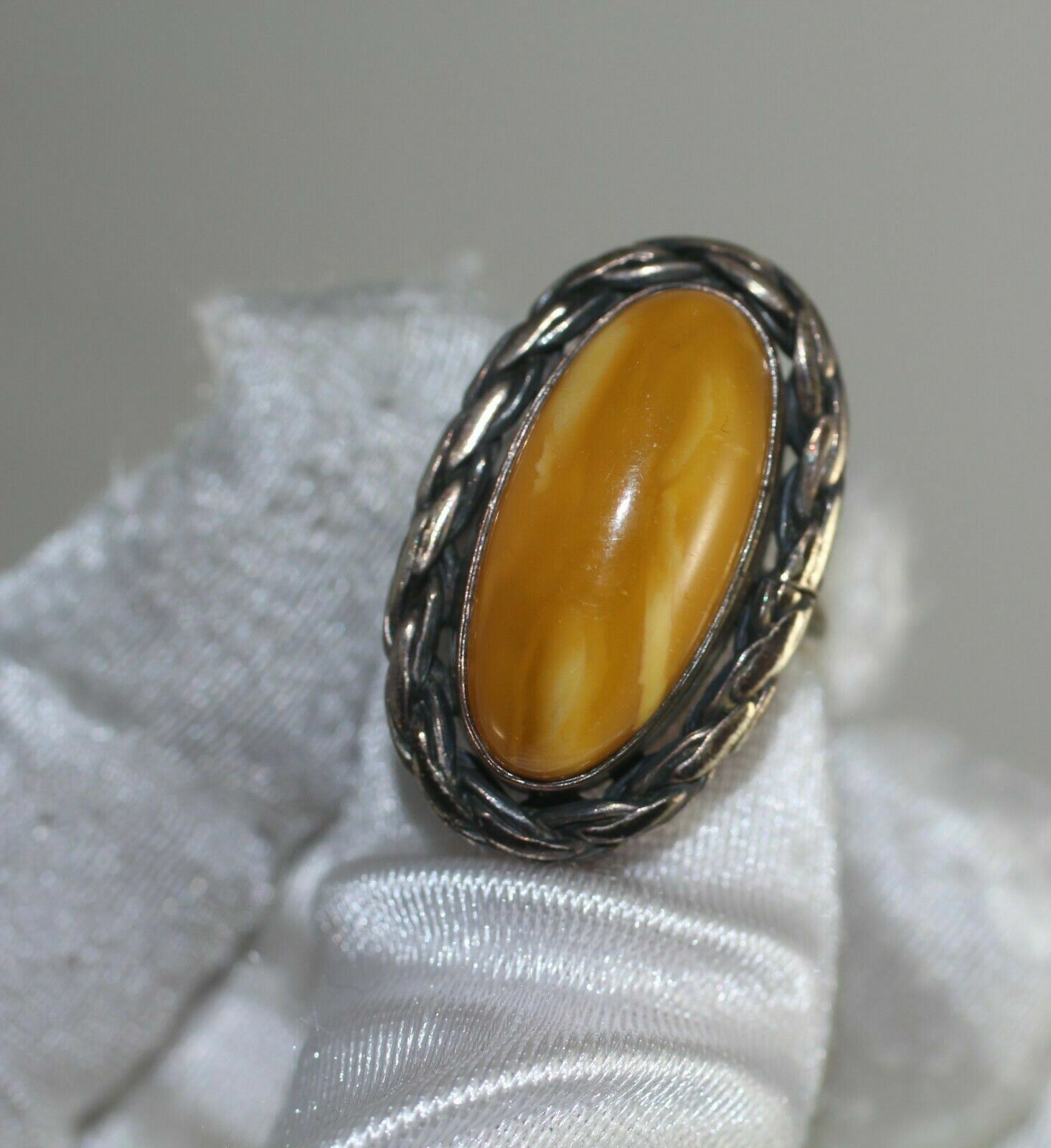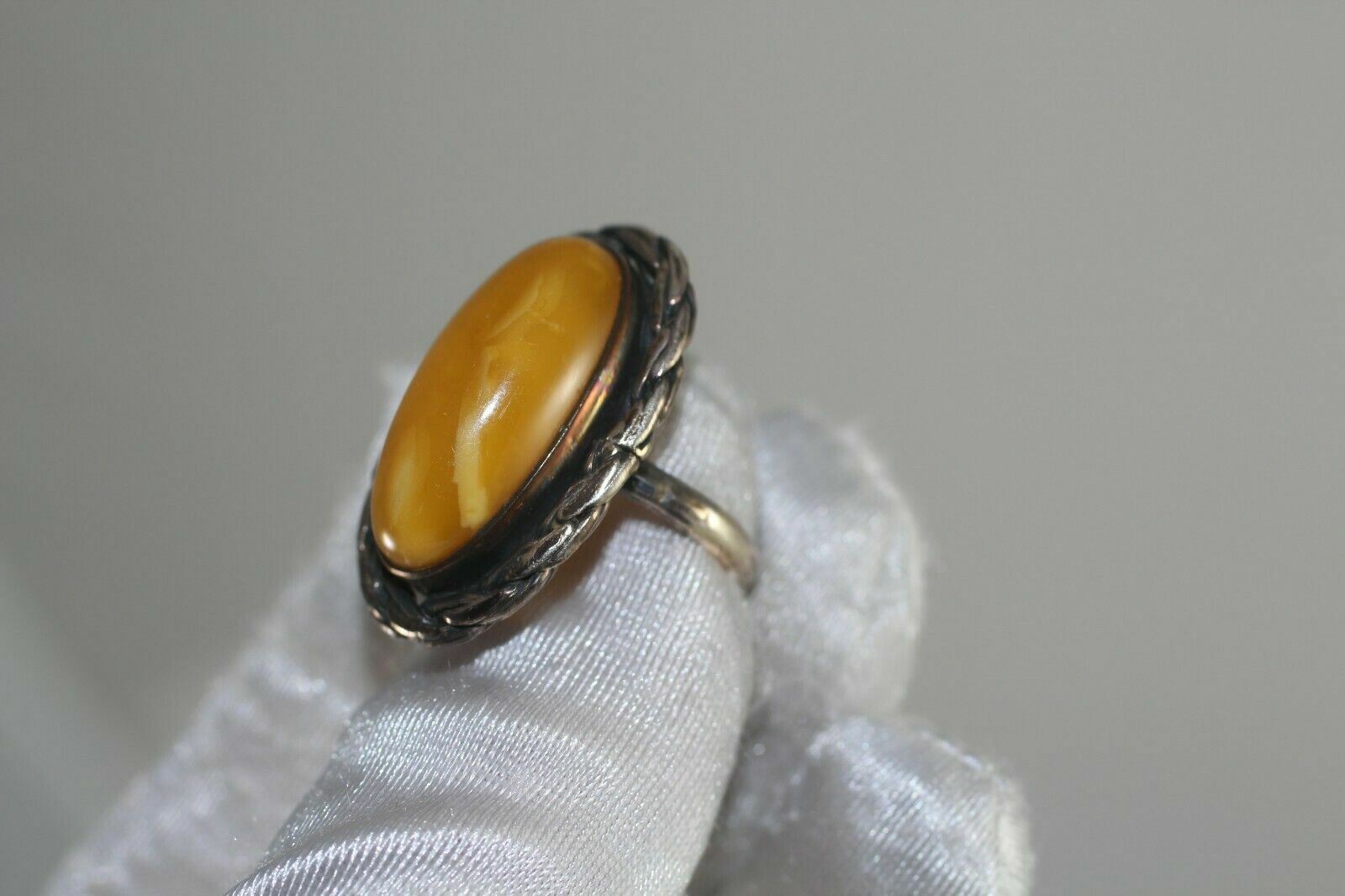 как выглядит Natural Vintage Butterscotch Egg Yolk Baltic Amber Oval Ring Size 6.5 фото