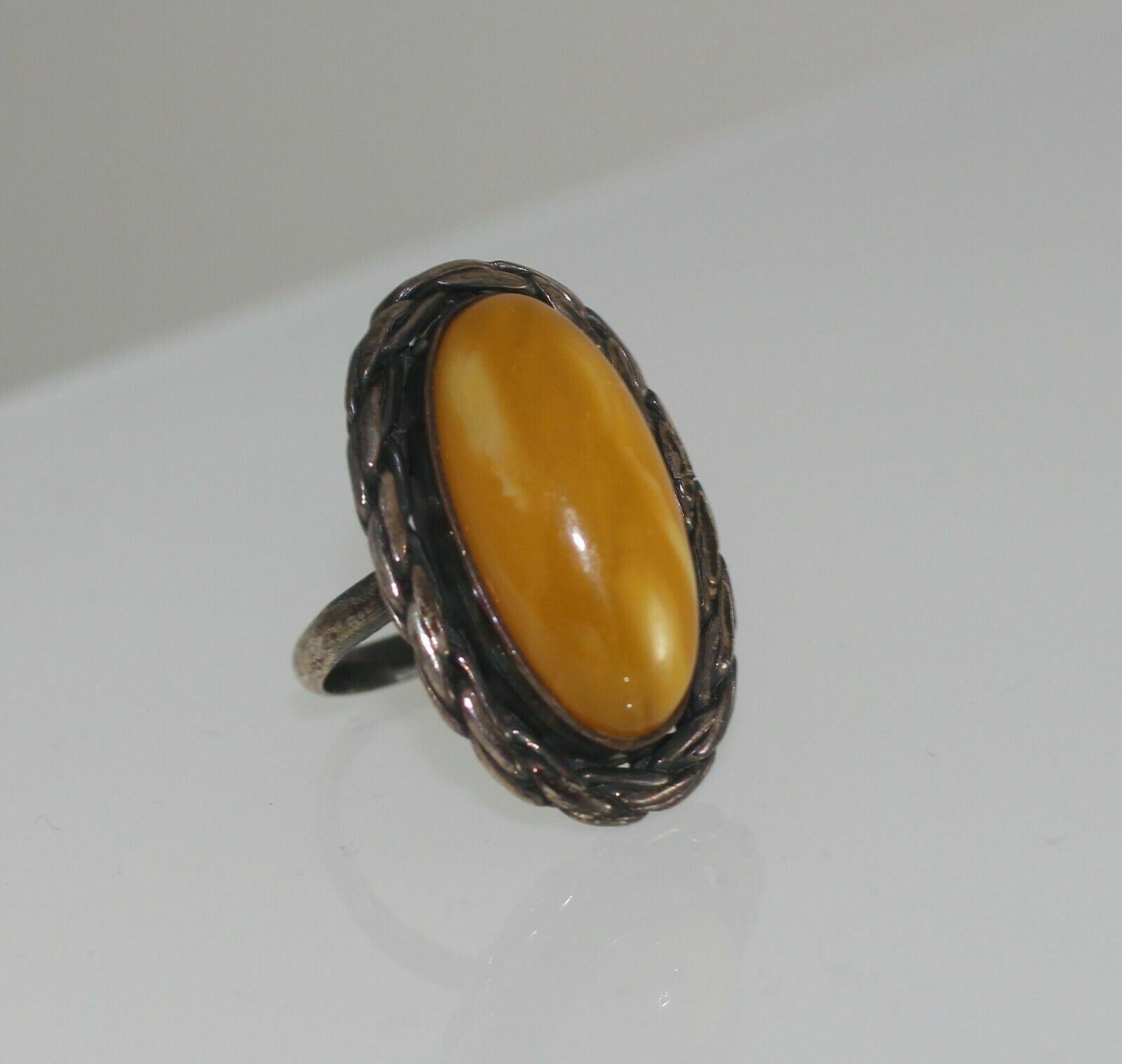 Natural Vintage Butterscotch Egg Yolk Baltic Amber Oval Ring Size 6.5