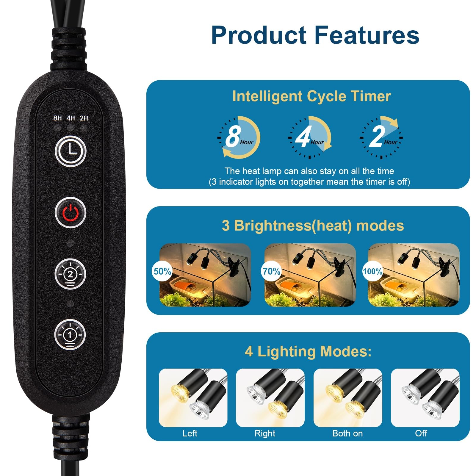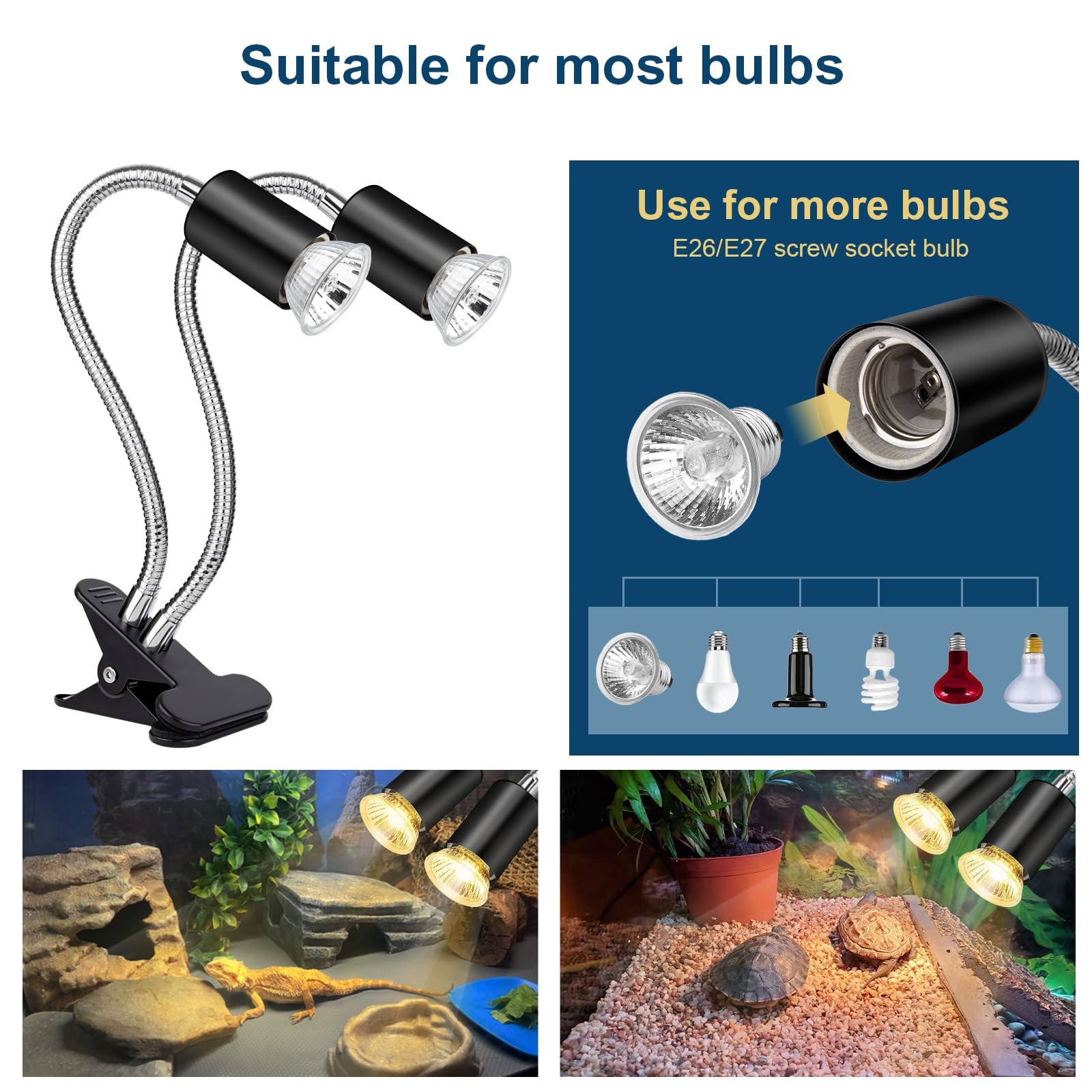 Buddypuppy Reptile Heat Lamp, Double-Head Light Timer, UVA UVB...