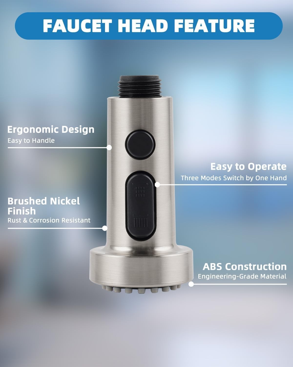 Hibbent Pull Down Kitchen Faucet Head Replacement, 3 Function Brushed Nickel