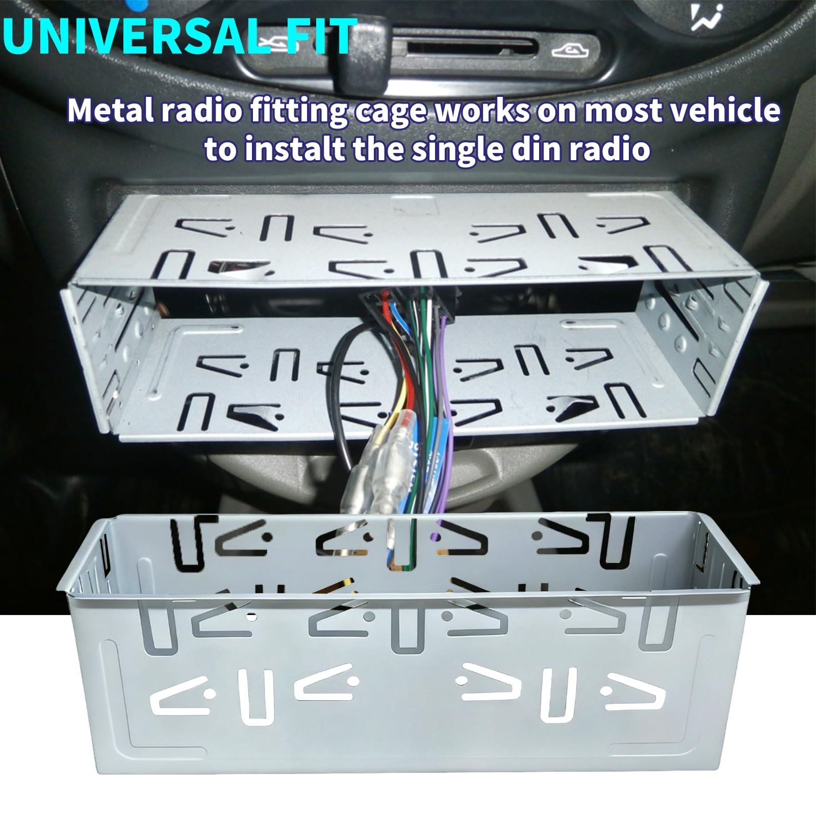 Autokemat Universal Single Din Stereo Radio Replacement Fitting Cage Silver
